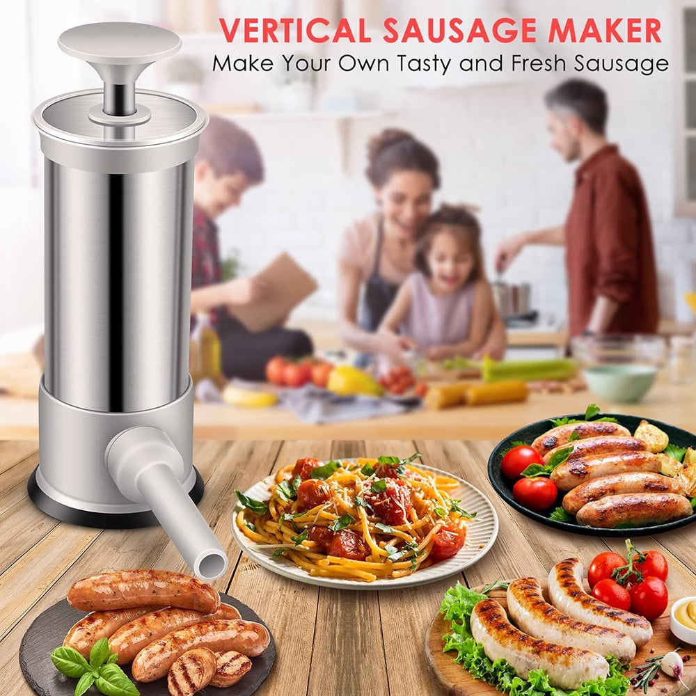 - 🍹【Easy To Assemble & Clean】Compare to a traditional plastic sausage maker, this vertical sausage stuffer is easier to use, only fill the appropriate meats in the stuffer barrel and put the casing on the tube, then press the piston to make sausages. You will get one sausage in a short time. Our manual sausage stuffer is detachable that easy to clean, please be sure to dry it thoroughly before reassembling.