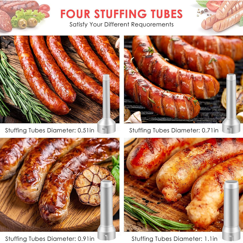 - 🍛【Enjoy Homemade Fun】The meat sausage stuffer comes with 4 PP tubes, 2 brushes. The household sausage stuffer can be used for the preparation for a holiday celebration and family reunion, you can easily enjoy self-service fun with your family.