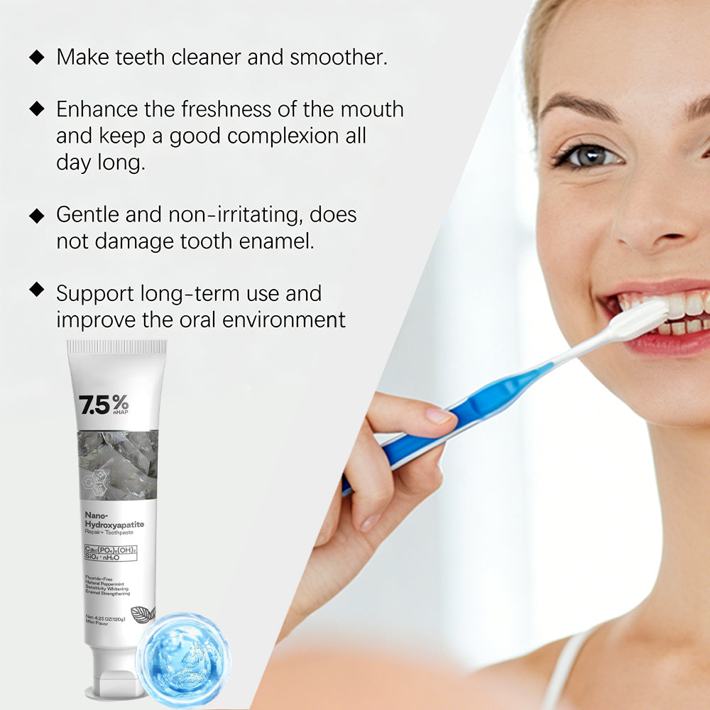 ăHydroxyapatite ToothpasteăThis toothpaste is designed to repair and protect tooth enamel, reducing the risk of cavities and erosionďźPowered by hydroxyapatite, a naturally occurring mineral that helps effectively restore and strengthen tooth enamel, protecting your teeth from daily wear and tear