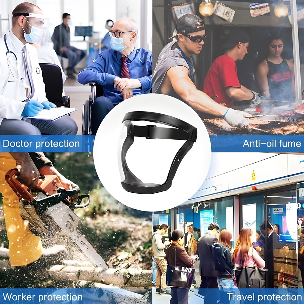 Large area from the eyebrows to the chin to protect against foreign aggression,Full Facial Protection from droplets, saliva,splash,oil and dust.