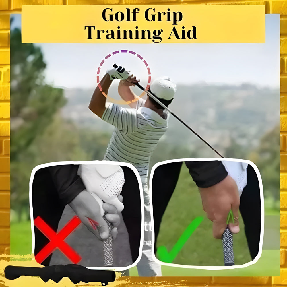 - Golf Grip Training Aid is an ergonomic handle designed to assist for a perfect grip.