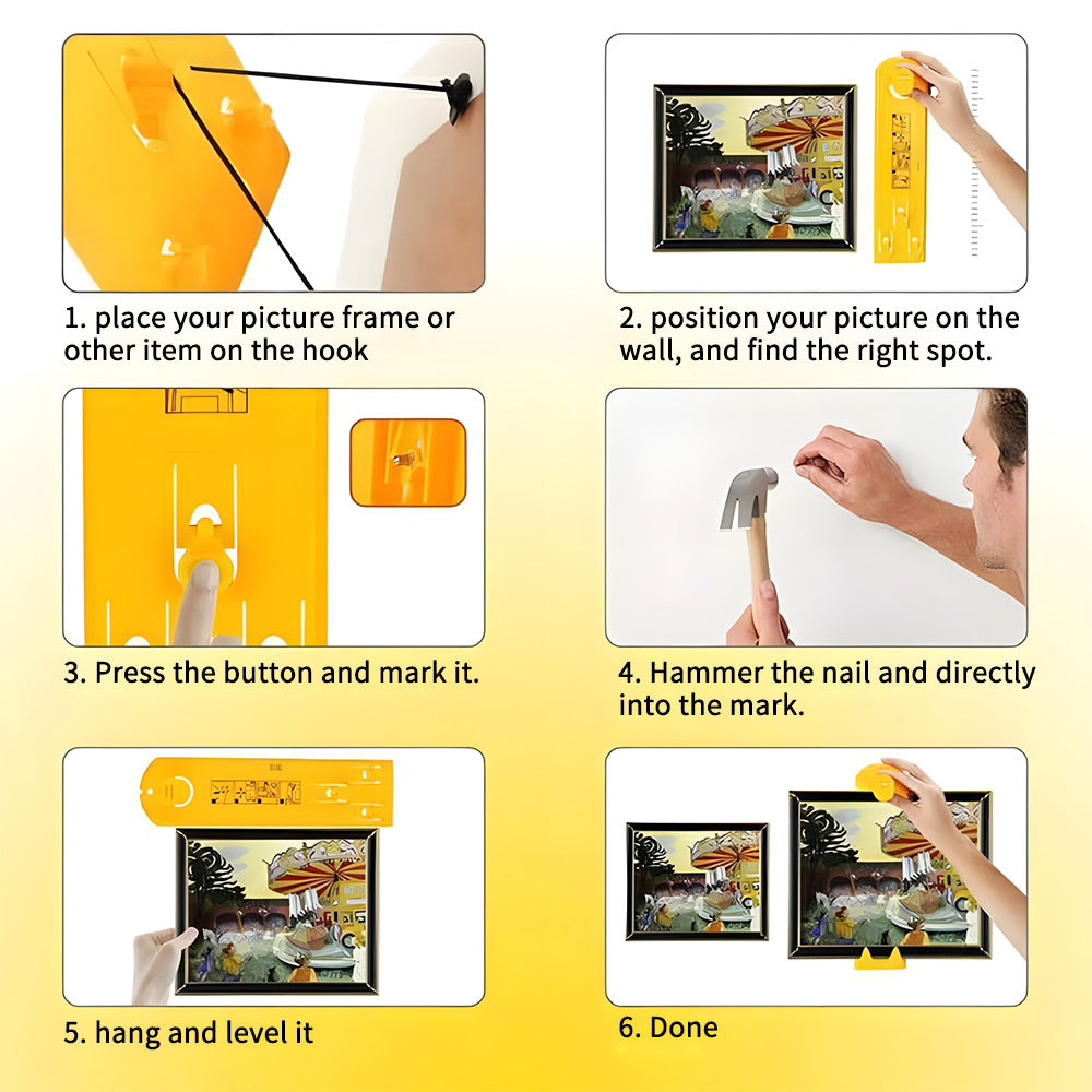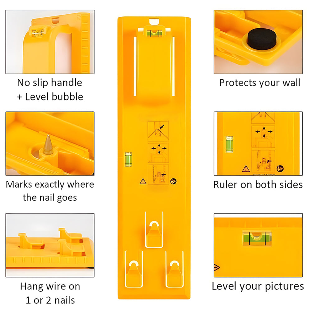 Picture frame hanging ruler is ideal for hanging pictures, photo frames, mirrors to help you mark the exact position and level it.