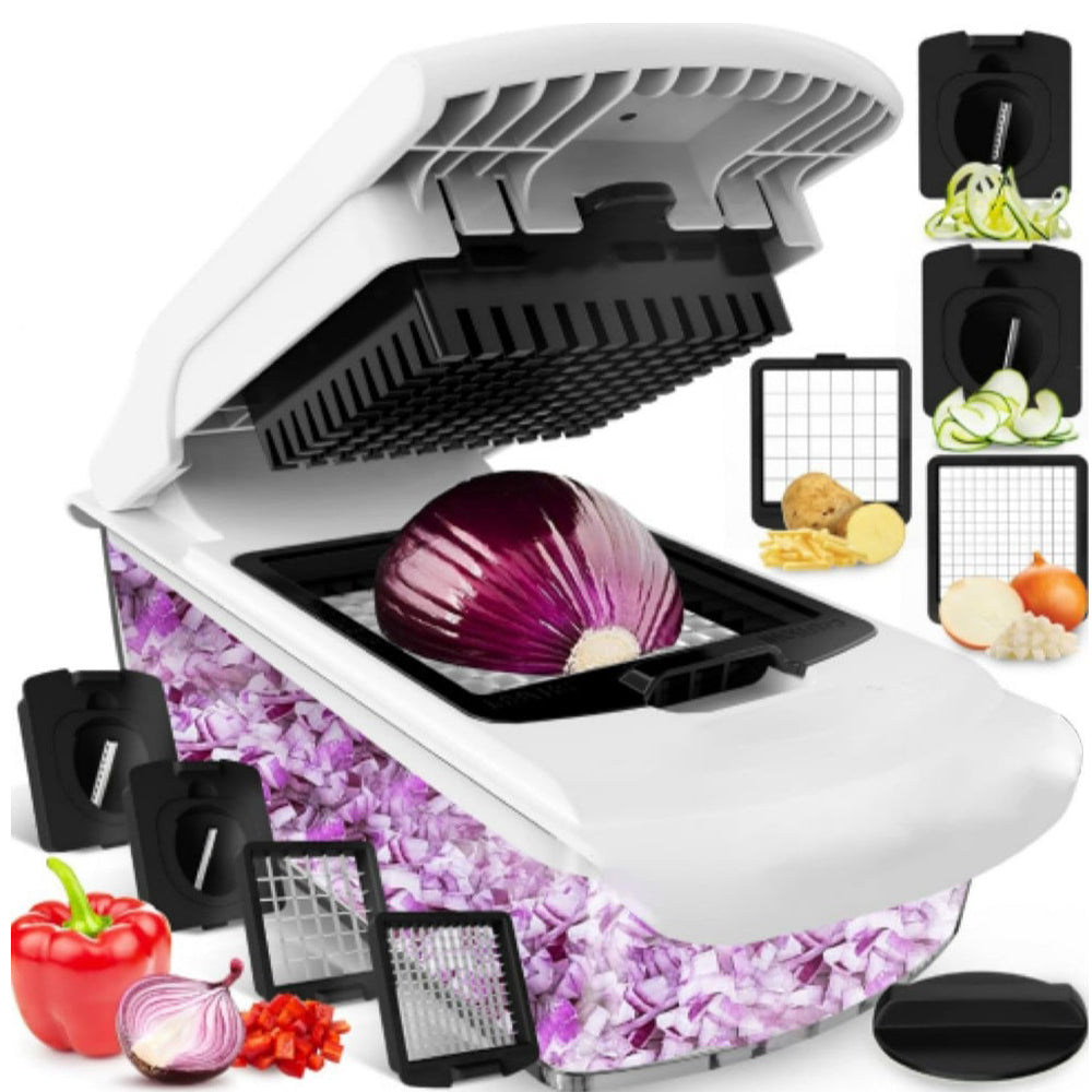 Do well in vegetable chopping, onion slicing, and potato dicing effortlessly with this 18-in-1 kitchen tool designed to enhance cooking efficiency through its multi-functional capabilities
