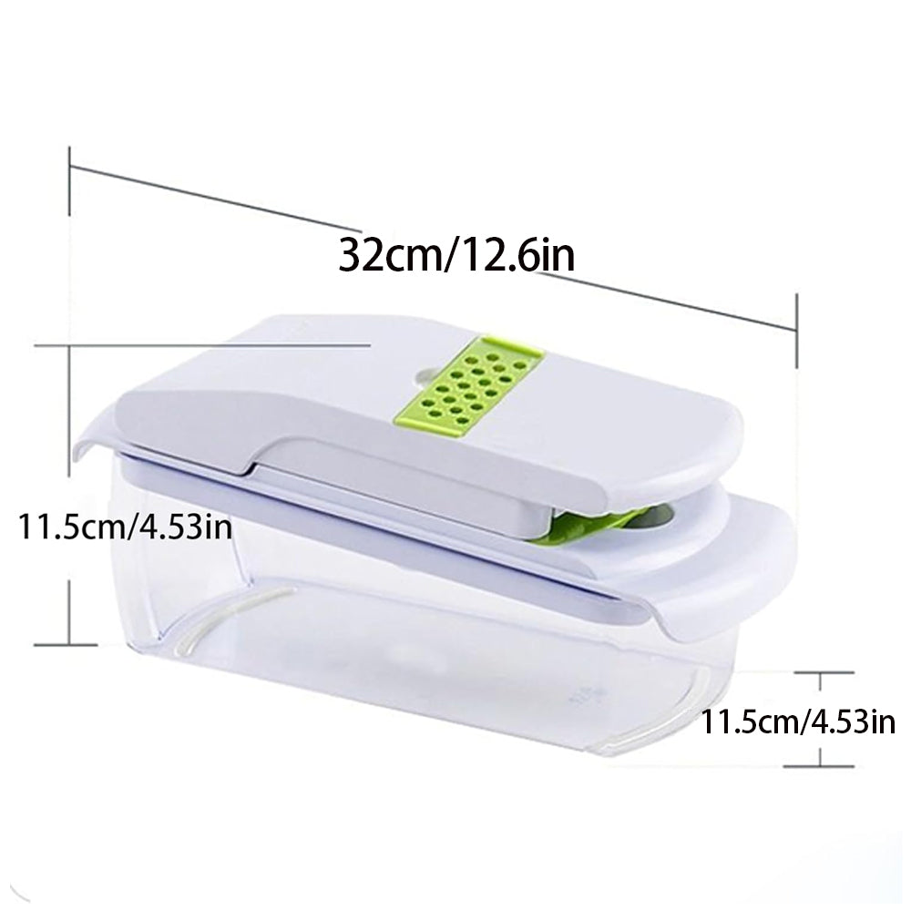 - 🥕【LESS MESS & MORE EFFICIENT】When you use a vegetable chopper, you need a safe tool. The food slicer has a large container that could easily store all the blades which could keep your kitchen from mess. The anti-slip design at the bottom of the bowl increases the friction with the tabletop, so don't worry that the bowl filled with ingredients is easily overturned.