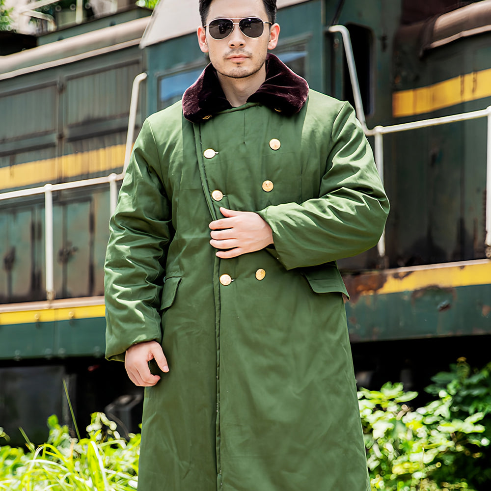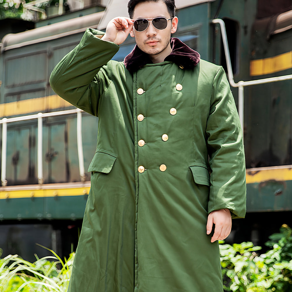 - Benefits: long coat, 4 breasted buttons, length is knee length, reverse, 2 front pockets, waterproof fabric. 5 cotton catties plus velvet.