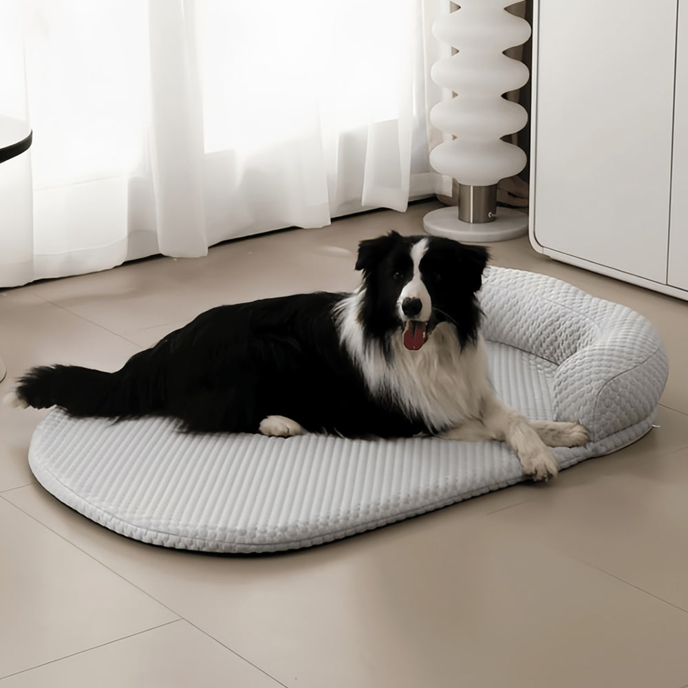 Made with lcy Silk material, naturally cools down your dog the moment they lie down, providing immediate relief from the heat.Unlike typical gel cooling pads that can be hazardous if ingested, our bed is safe and non-toxic. lt requires no recharging or refrigeration.Whether relaxing after a walk or napping through a hotday, your dog will enjoy consistent coolness.