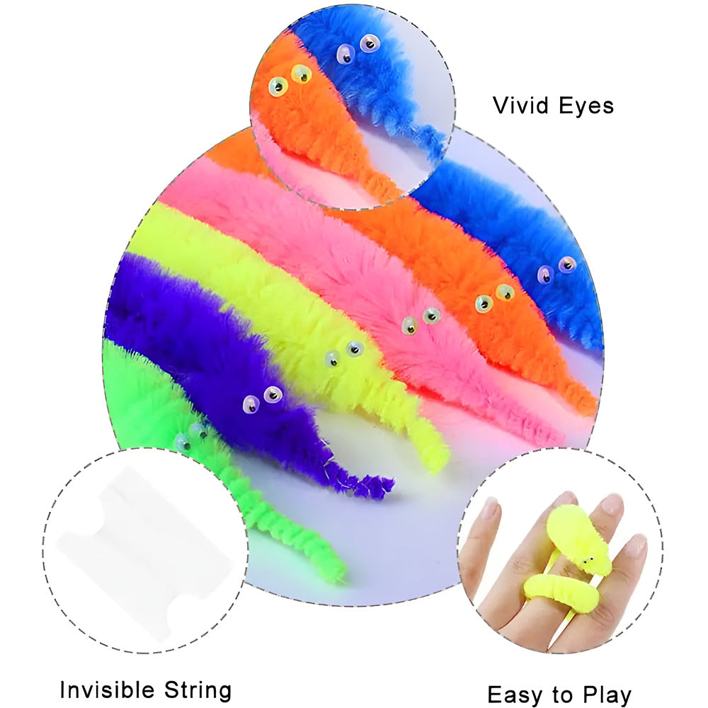 - GREAT GIFT - These magic worm toys have bright colors, soft feel and beautiful packaging. They can be used as magic props, children's toys and cat toys, and various decorations. It is a great gift for your kids and friends.