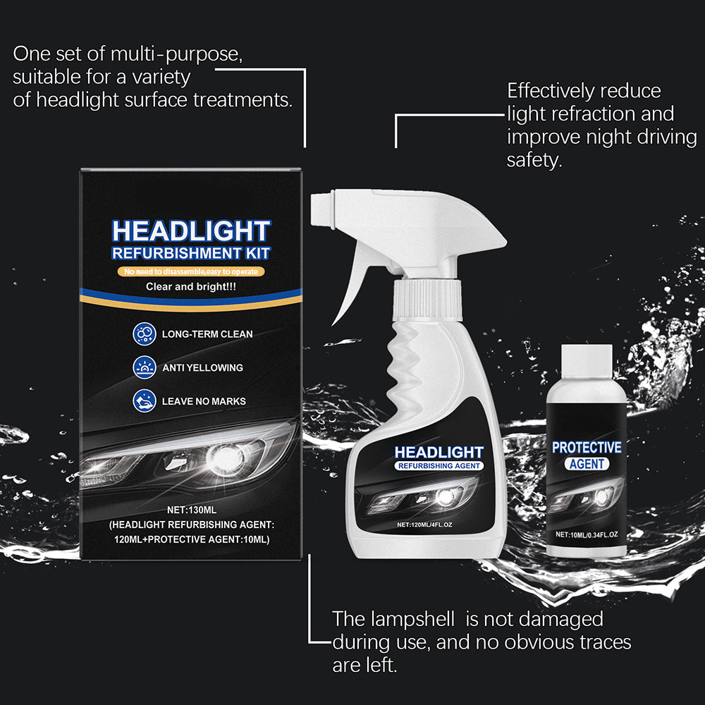 Complete Restoration Kit: Includes everything you need: cleaning spray, polishing compound, and microfiber cloth for a flawless finish.Improve light transmittance.