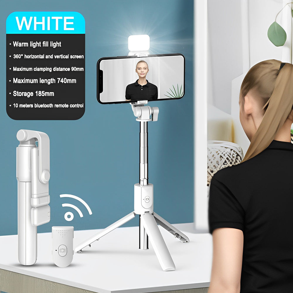 [Hand Held Selfie Stick Stabilizer & Detachable Fill-in Light] The Selfie Stick Stabilizer can easily shoot stable videos with stable balance, which canĀ reduce the shakingĀ of your body friends or family members during the shooting process. Besides, the selfie tripod also has a fill-in light function. You can beautify your skin color and make yourself more beautiful.