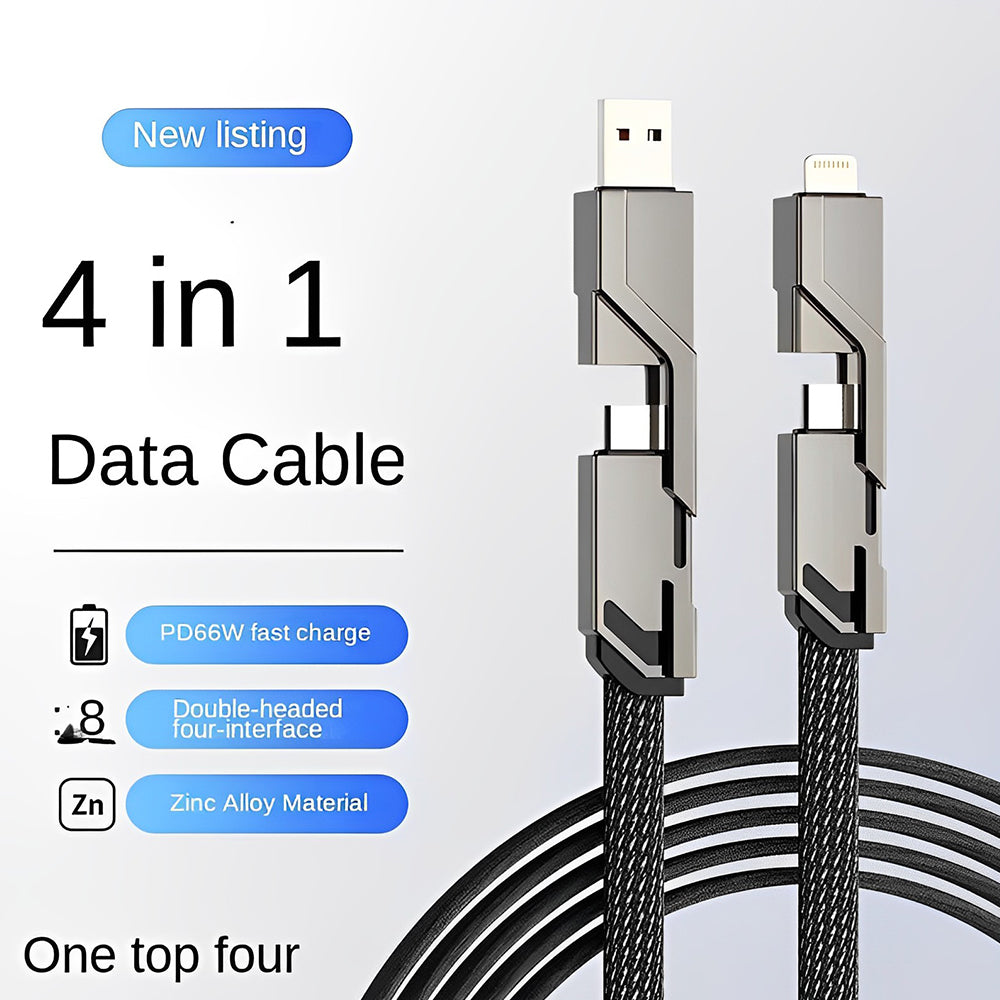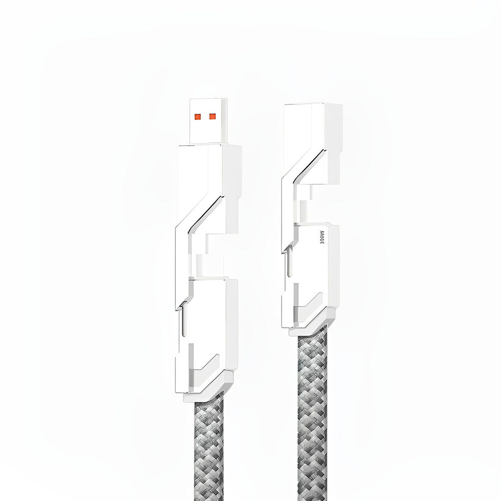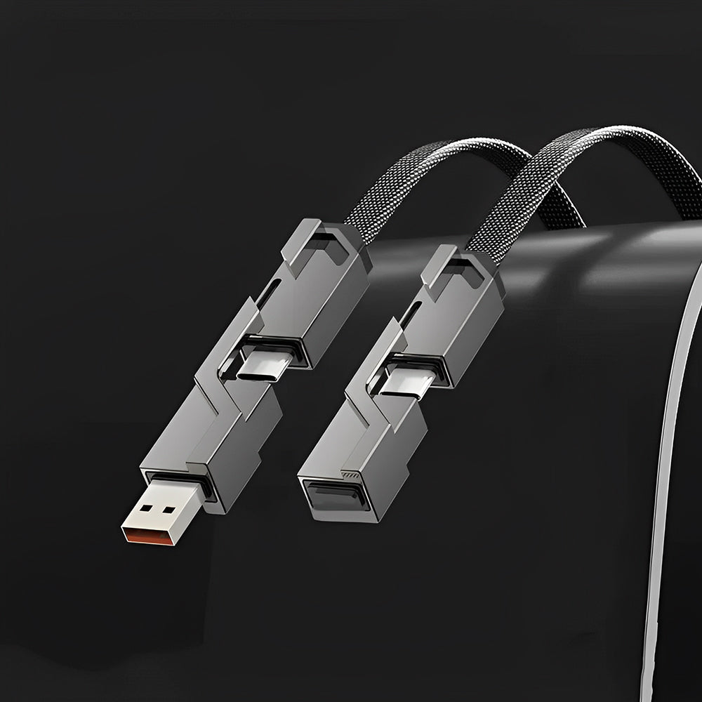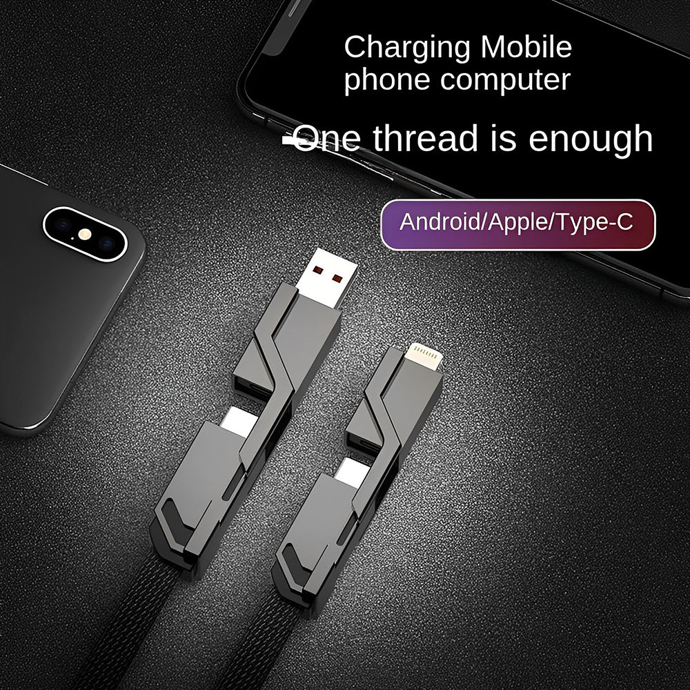 4-in-1 Flat Braided Anti-tangle Charger Cable with Velcro