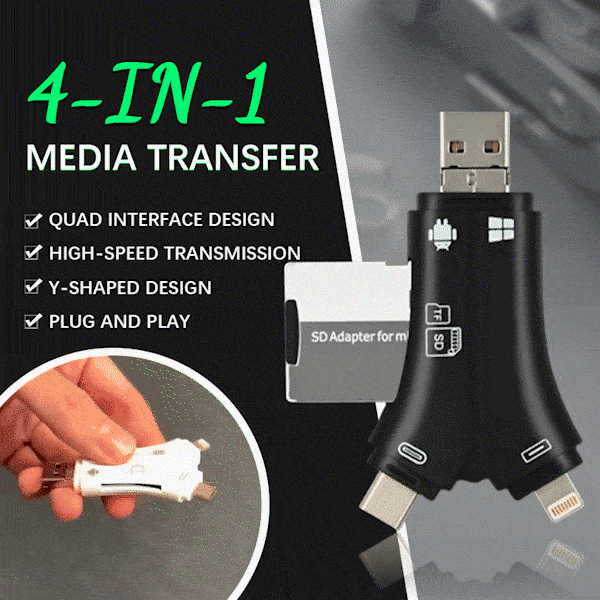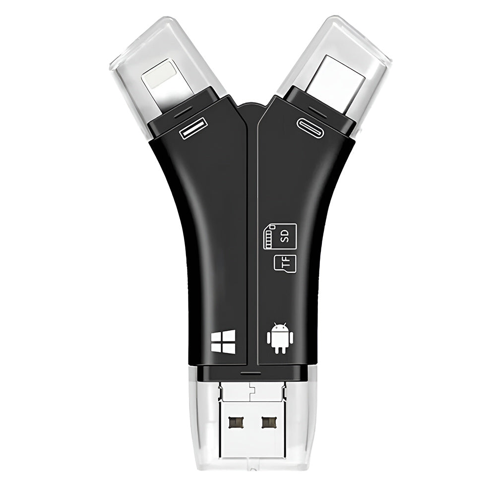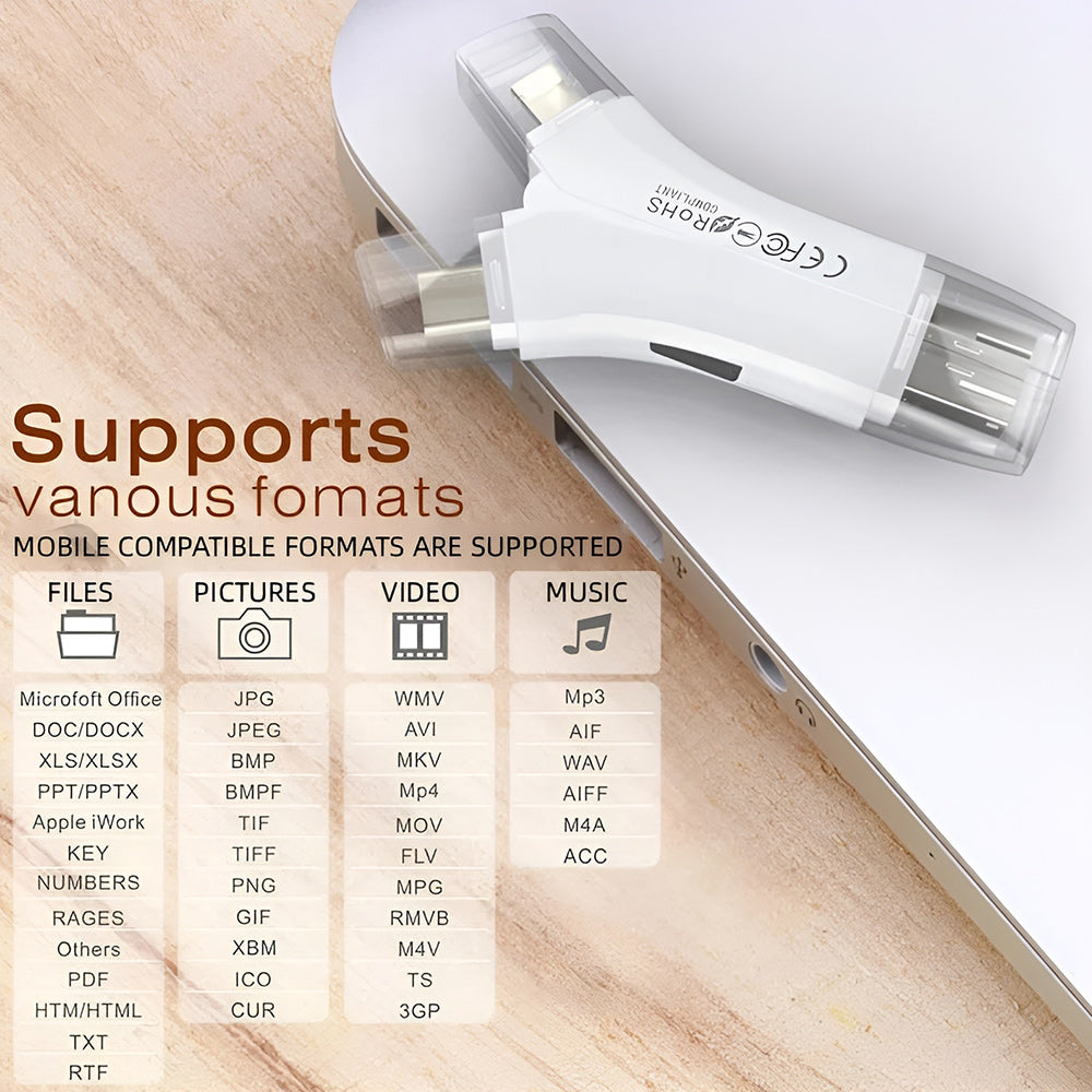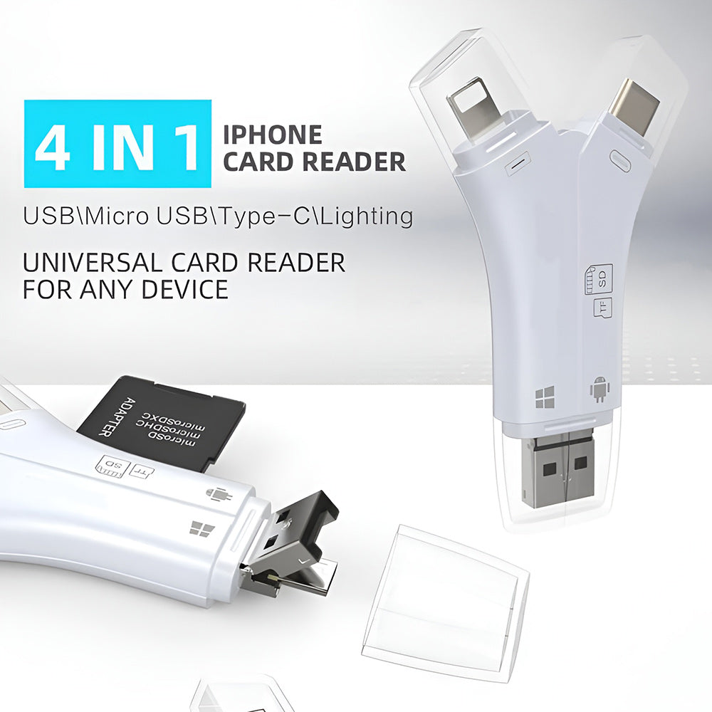 • 4-in-1 SD card reader: The memory card reader has various interfaces, which is suitable for iPhone/iPad, allowing you to easily transfer the required files between different devices.