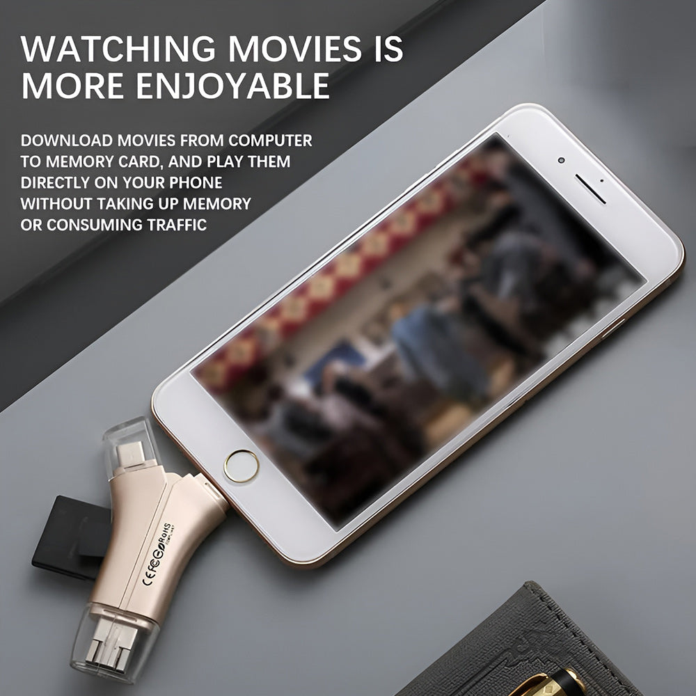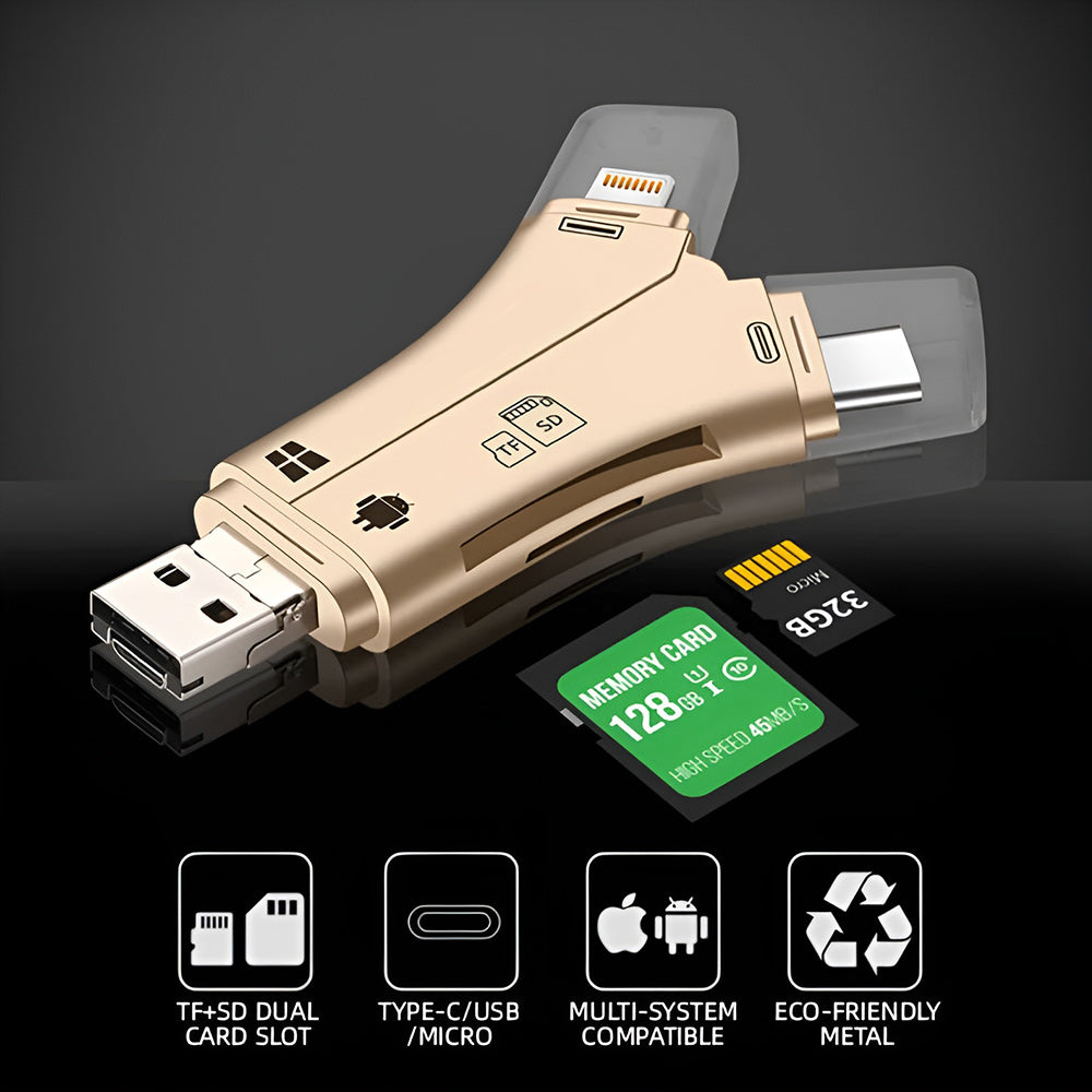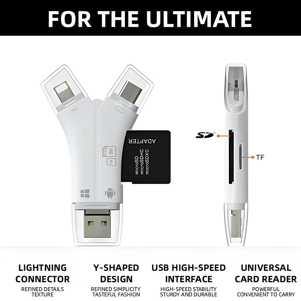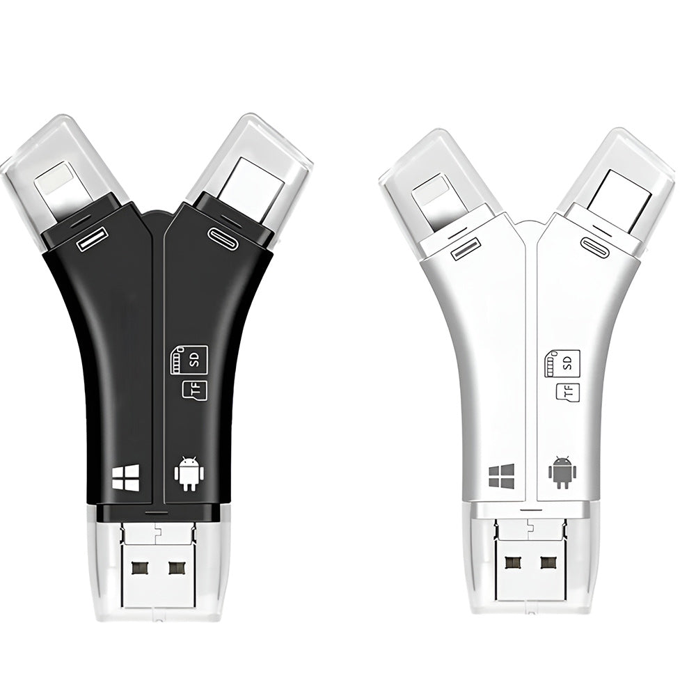 • 4-in-1 SD card reader: The memory card reader has various interfaces, which is suitable for iPhone/iPad, allowing you to easily transfer the required files between different devices.