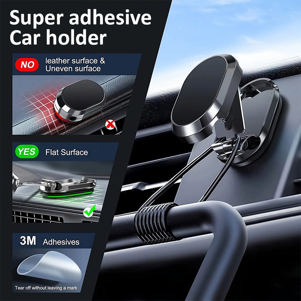 - Multifunctional magnetic car phone holder: This foldable table phone holder for the dashboard in the car is equipped with a foldable function, can be folded when not in use, does not block your view and is easy to store. The 360° rotatable base and allow you to adjust the viewing angle. This magnetic phone holder for car is widely used for dashboard, instrument panel, back of the screen, desk, kitchen, desk and other applicable areas.