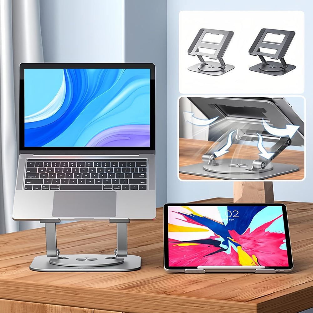 - 360° Rotatable Design: 360 ° all-round rotation, easy to change the angle of the laptop stand, at any time to turn to deal with different occasions need the angle, and the sound issued by the rotation of the stand is very decompression.
