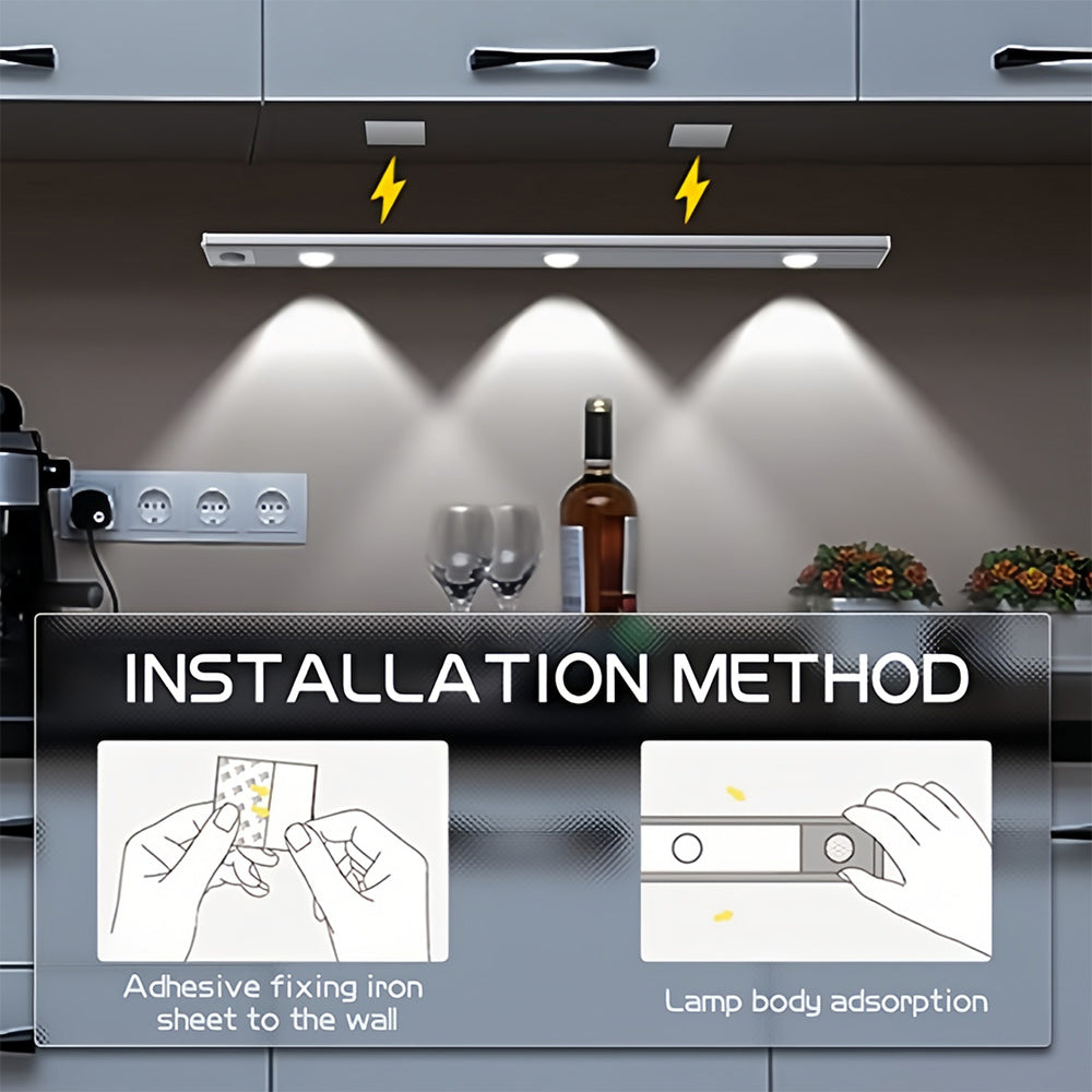 - ❤️【USB Rechargeable and Energy Saving】 These led battery-operated lights with a built-in high-capacity rechargeable battery, easily charged via the USB cable(included). After fully charged, the wireless under cabinet lighting is 60 days under motion sensor(G) mode(activate 5-8 times a day).