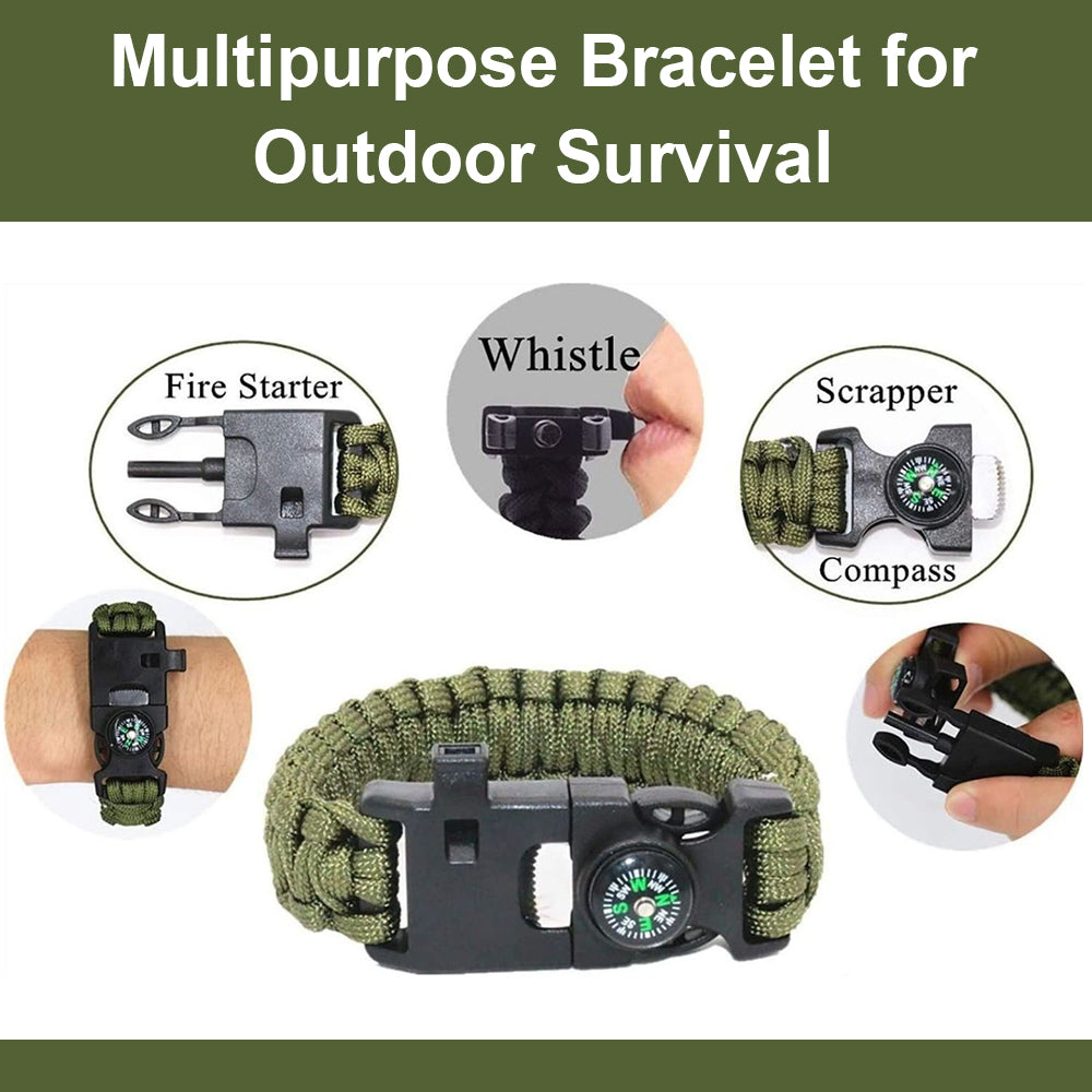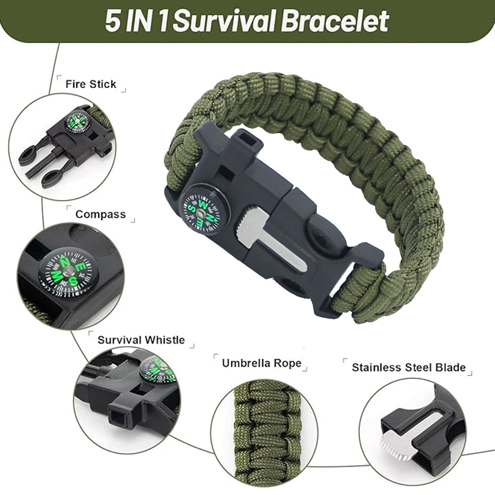- 【5 in 1 Survival Kit】Outdoor compass, flint and steel, emergency whistle, advanced parachute cable, multi-tool; ideal accessory for camping, hunting, hiking and other outdoor activities.