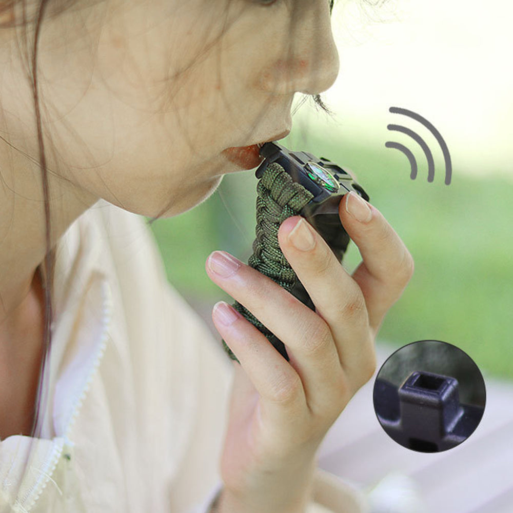 A whistle can easily make a loud sound, the ignition stone can ignite quickly, an umbrella rope needed for outdoor adventures.