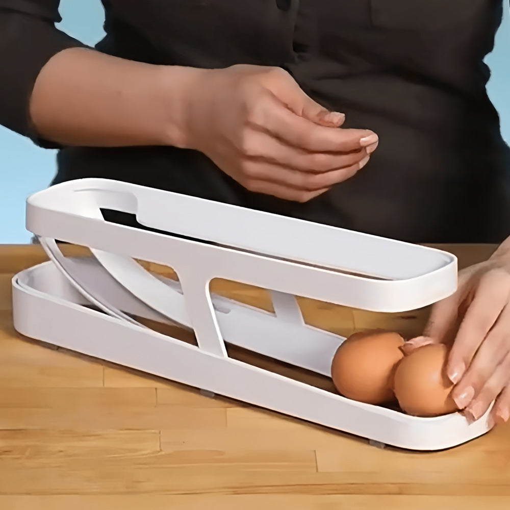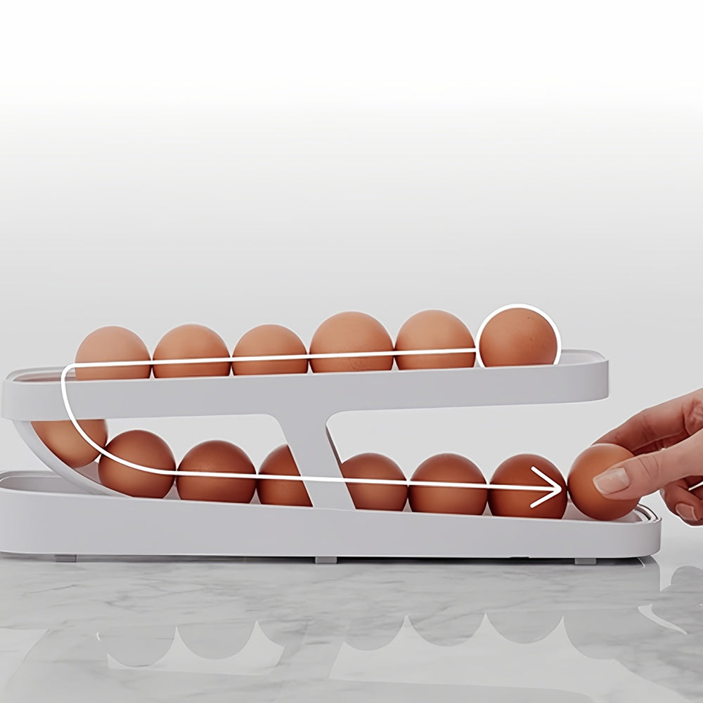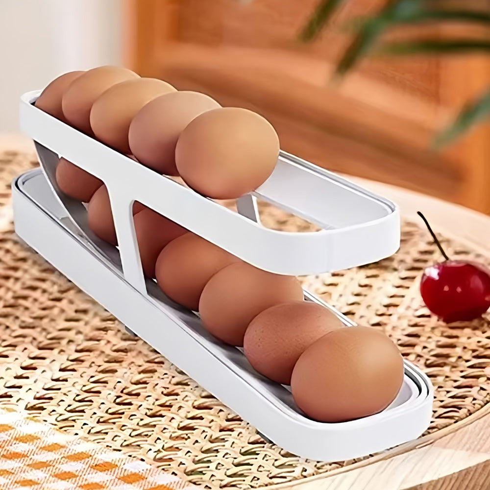 Say goodbye to messy egg storage, your new roll-down egg dispenser helps you save space and is easy and fun to access.