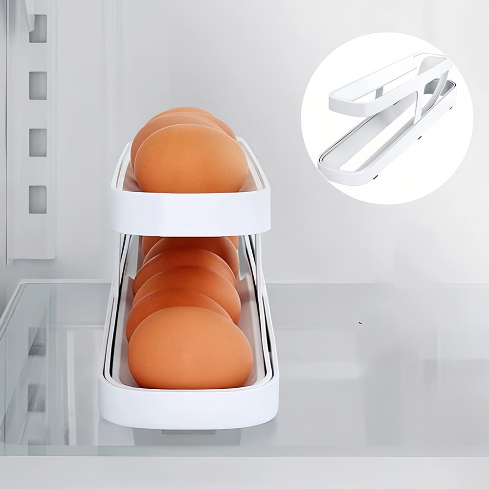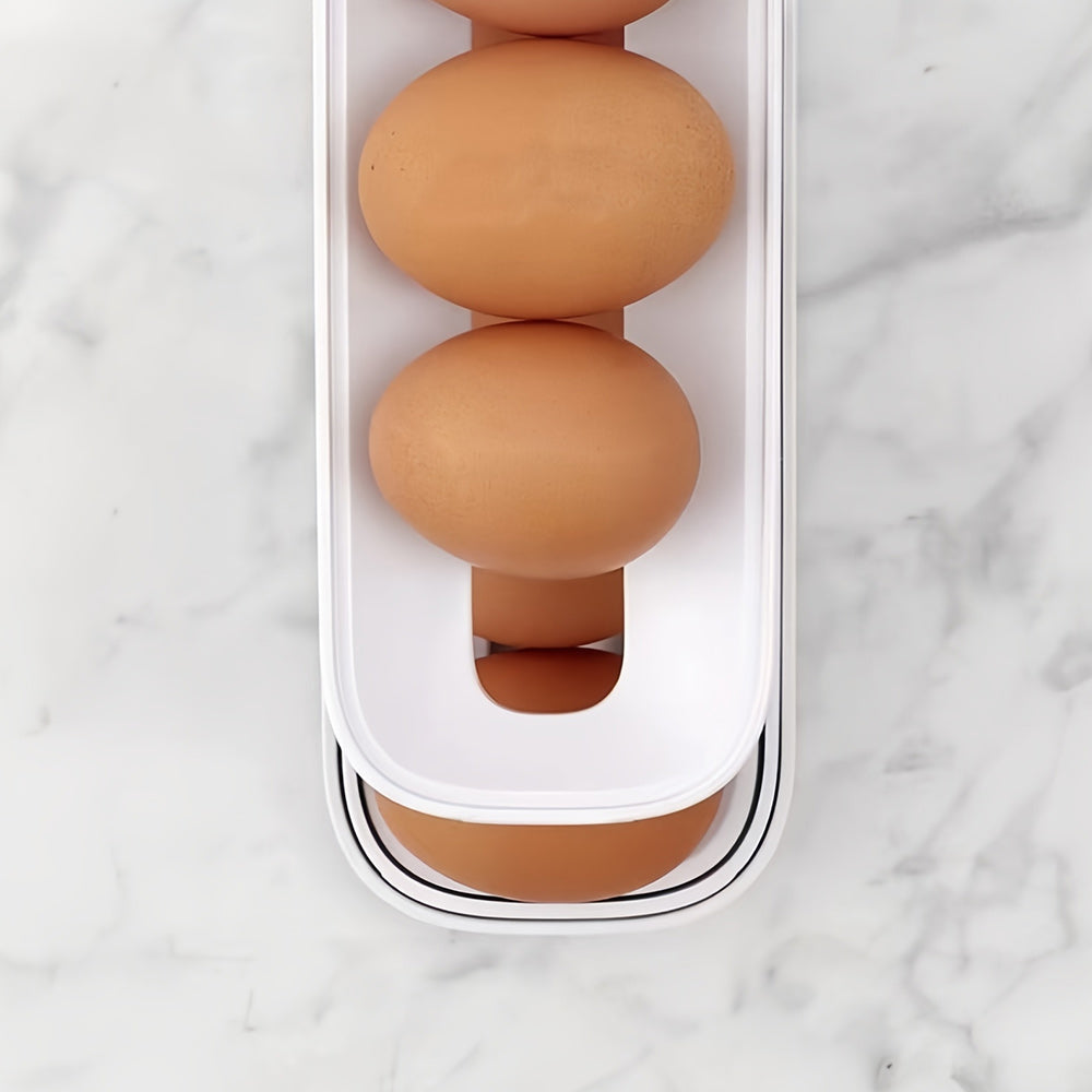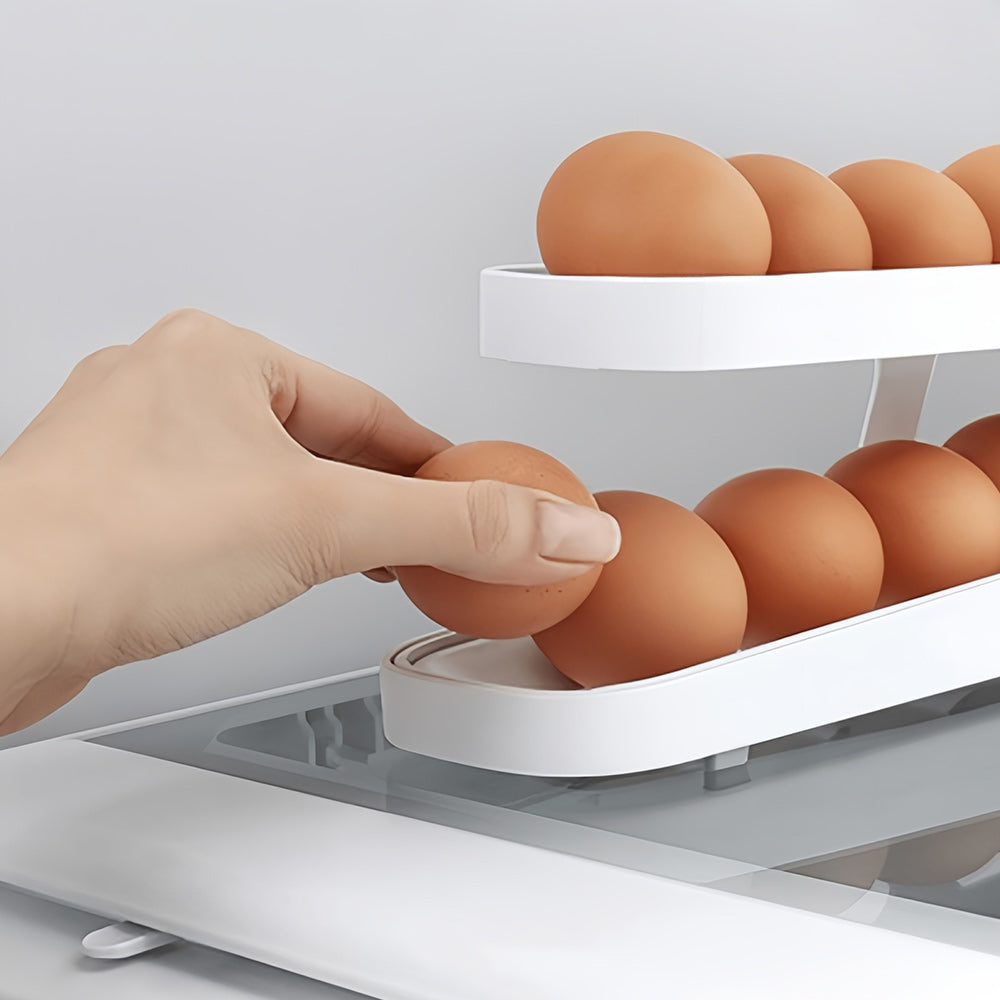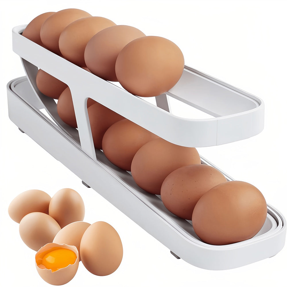 Say goodbye to messy egg storage, your new roll-down egg dispenser helps you save space and is easy and fun to access.
