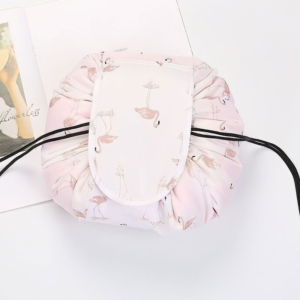 • ✔ PACK UP INSTANTLY – Packing up all your products is no longer a chore. Just place everything on the open makeup bag, and pull the strings to close. It really is that simple.