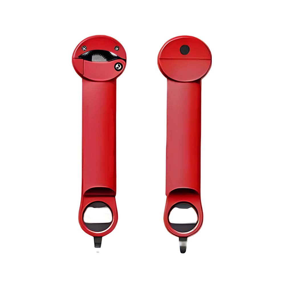 The multifunctional retractable bottle opener is a practical tool for opening a variety of bottles, cans and other containers. This all-in-one opener features a retractable blade and a comfortable ergonomic handle for easy handling. It is lightweight and compact, making it perfect to take with you.