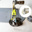 HOW TO USE - Using our hemming foot attachment is quick and easy. First, select the appropriate size hemming foot for your project. Next, loosen the needle plate screw on your sewing machine and attach the hemming foot. Once attached, fold the fabric edge over the hemming foot and begin sewing.