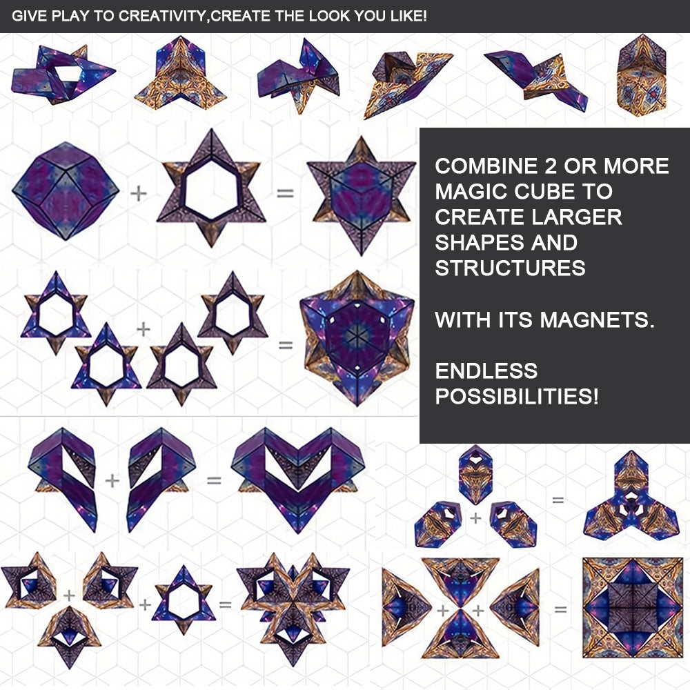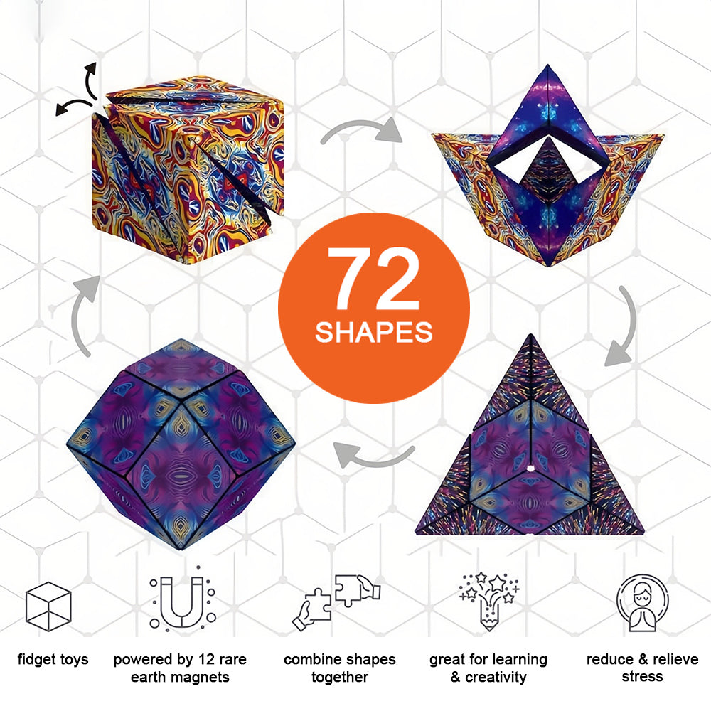 Unlock the mystery of Shashibo! Each Shashibo is powered by 36 rare earth magnets. 1 cube transforms into over 70 shapes. Combine 2 or more Shashibos to build larger shapes and create more possibilities. Can you master the shape shifting box?