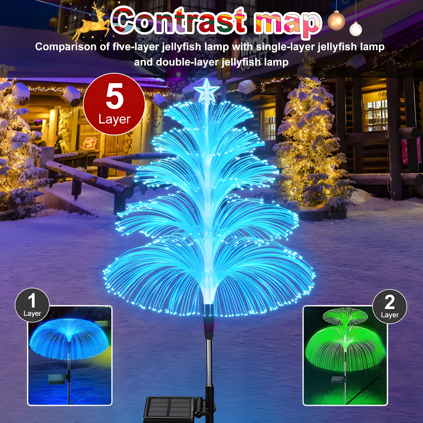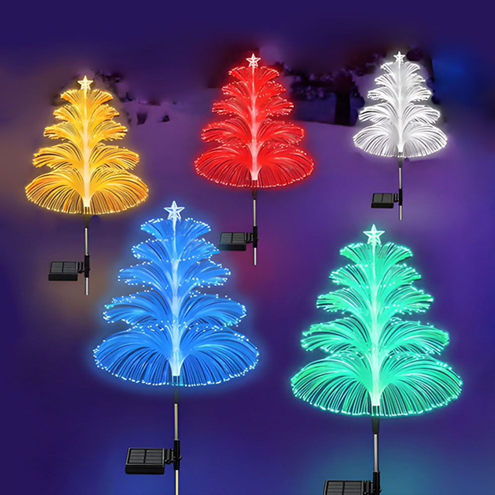 Transform your outdoor space into a mesmerizing wonderland with our captivating 7 Color Changing Solar Christmas Trees Lights. Illuminate your surroundings with their enchanting glow, gracefully shifting between vibrant hues.