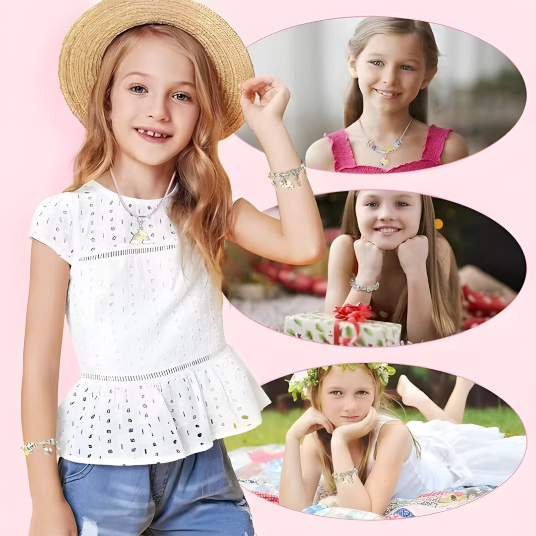- Girls' Necklace and Bracelet Set – Featuring charming pendants like rainbows, hearts, angels, snowflakes, wings, and crowns—all favorites among girls.
