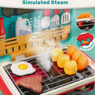 【Realistic Detail Design】Kids can put play food on the grill, just press "Purple Light& Music" button, which will present realistic lights and interesting music. Add appropriate amount of water, turn on the switch and the steam will come out.