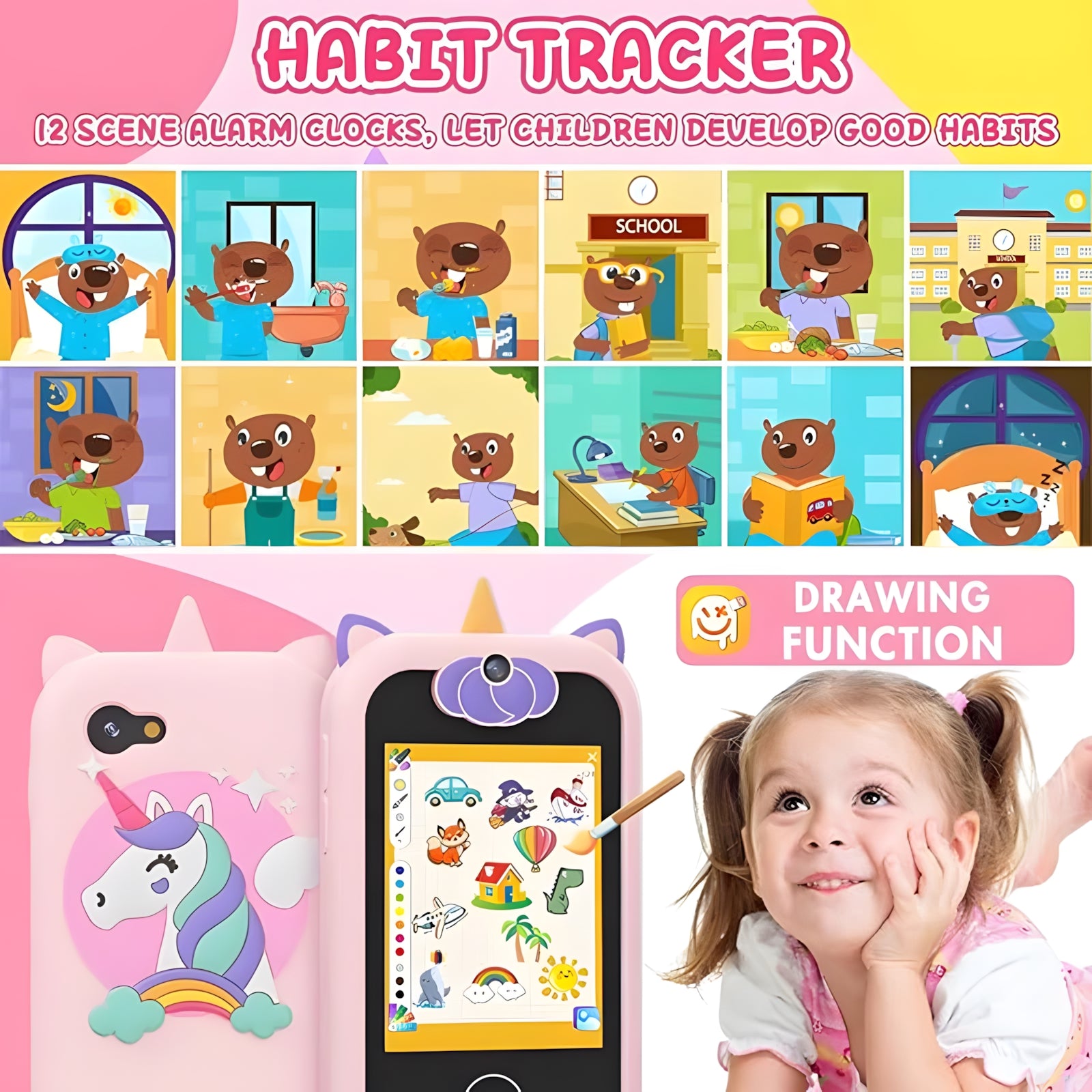 Let your child’s imagination run wild with the interactive drawing feature! This function not only fosters artistic talent but also enhances cognitive development, helping kids express themselves through art and creativity.