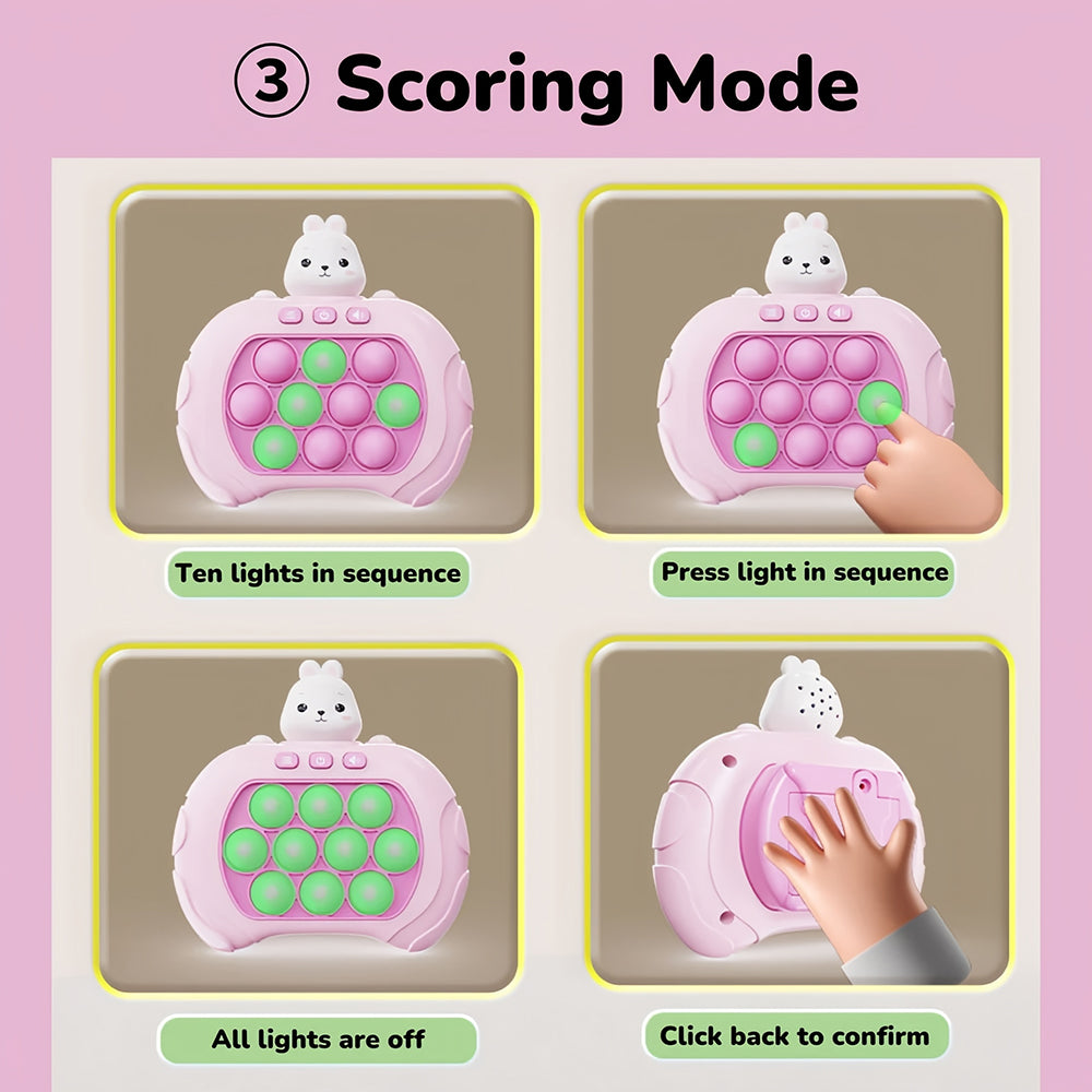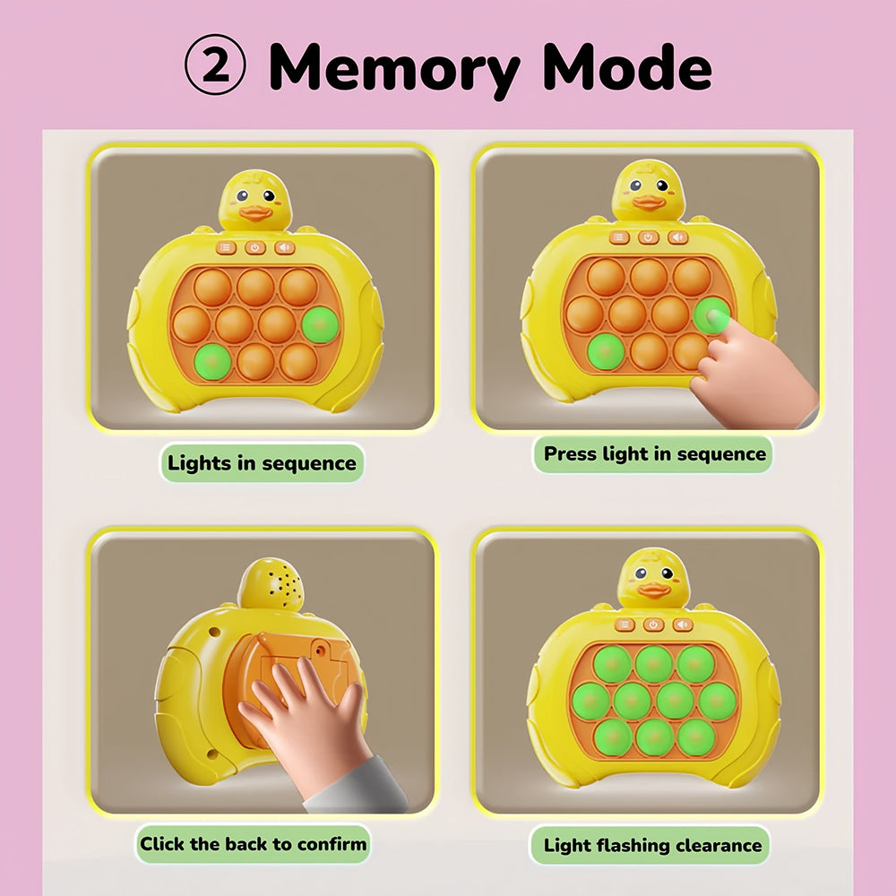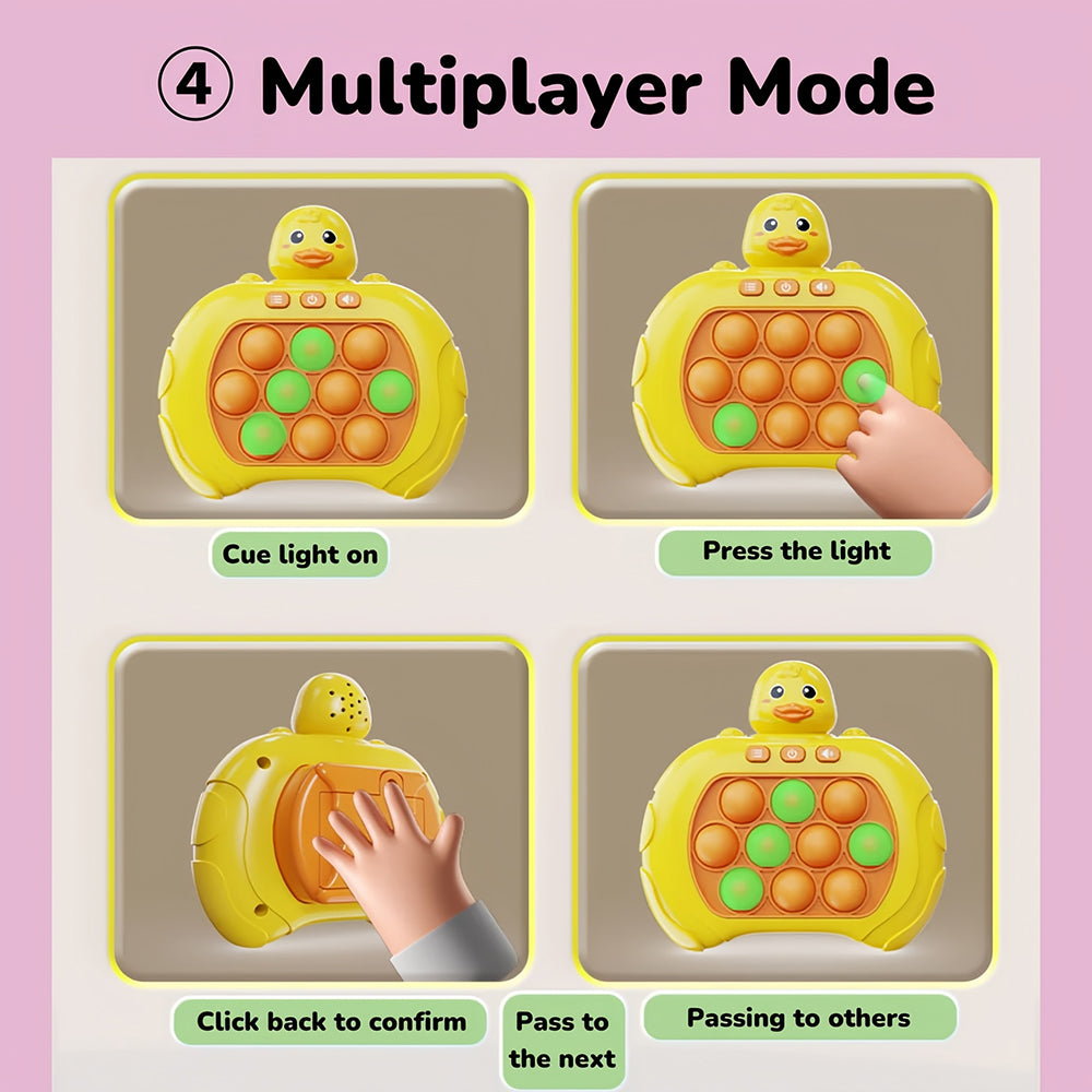 - 【Improved and Educational】Addictive classic press bubble game meets fast electronic game! Our newly released portable toys, which is simpler and more fun than most simon play toys. Kids will engage in positive thinking, hand-eye coordination and brain training during play challenges filled with lights and sounds, promoting your child's sensory development.