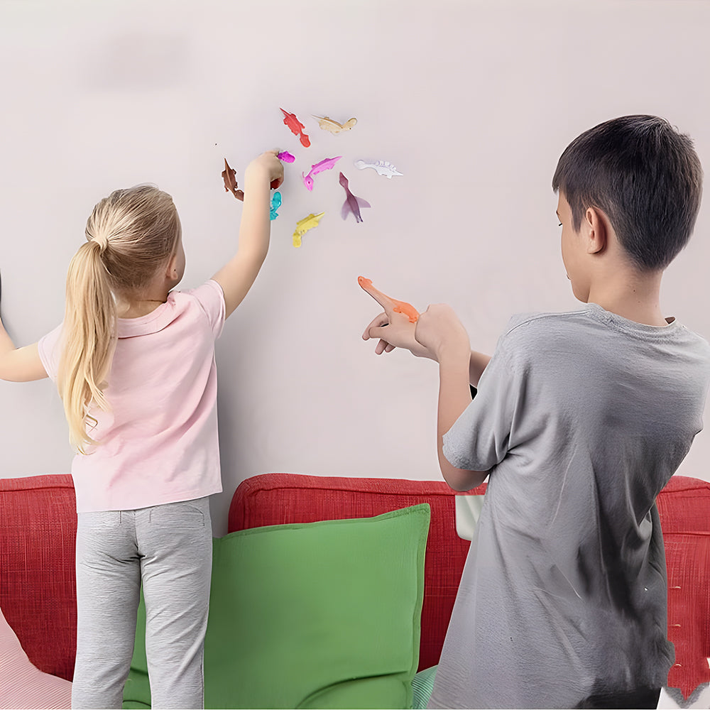 It's a very interesting process seeing slingshot dinosaurs flying in the office, kitchen or outdoor yard .They stick on wall ,ceiling even your friend's back then fall off slowly. Perfect outdoor games and party favor for kids and teens.