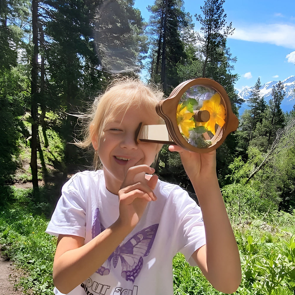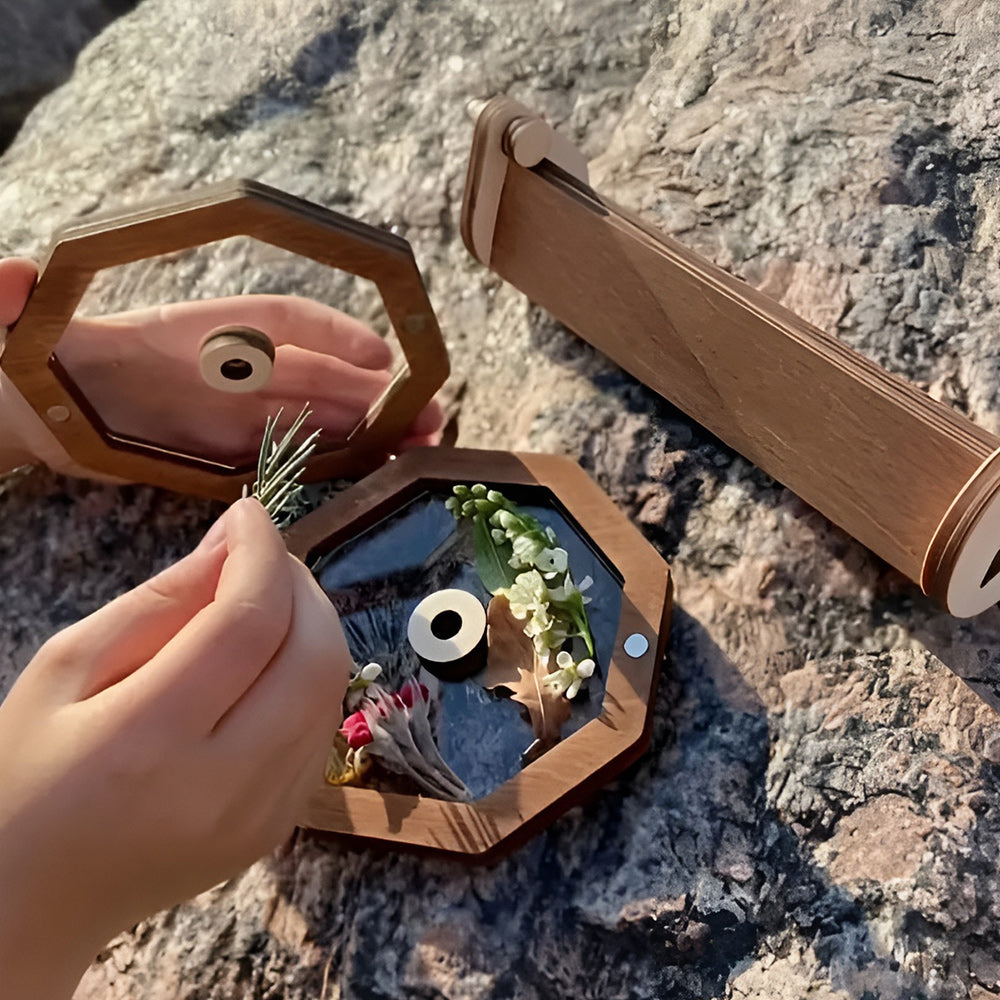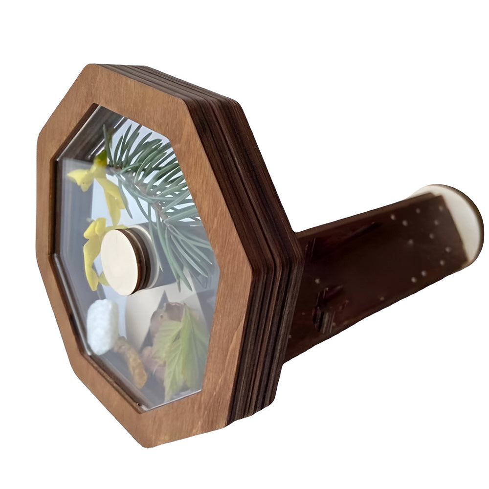 The kaleidoscope can be filled with different things and get different interesting patterns. Just open the lid and put in your favorite things of the right size (flowers, beads, leaves, dried fruits and etc.), and there will be different surprise patterns waiting for you to discover; this will help stimulate your child's unlimited imagination.