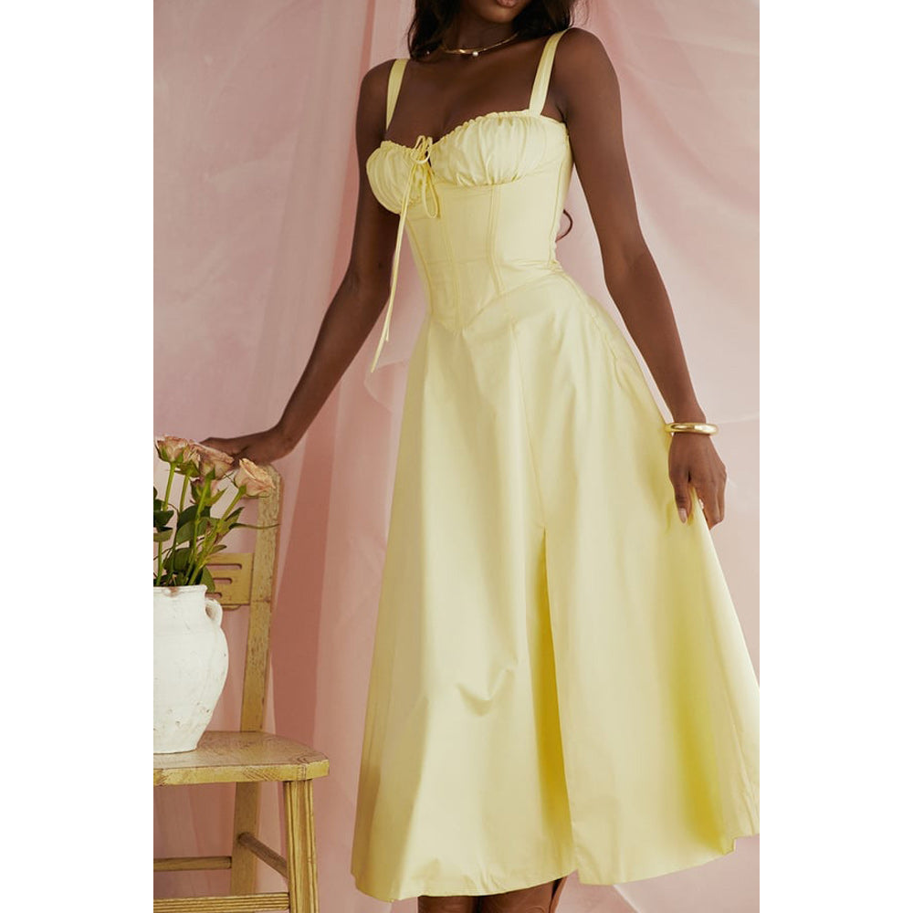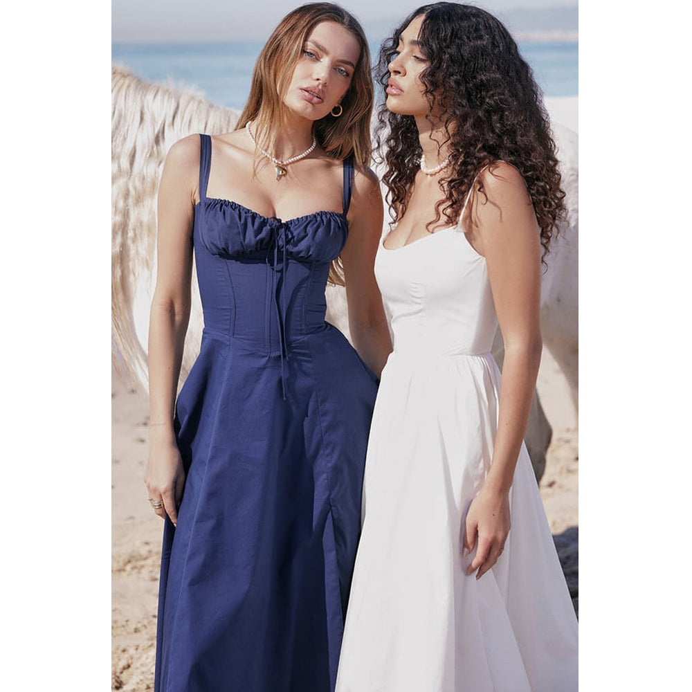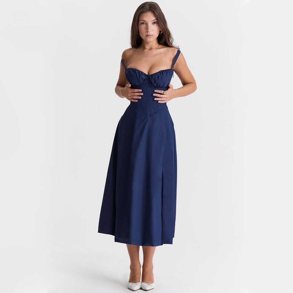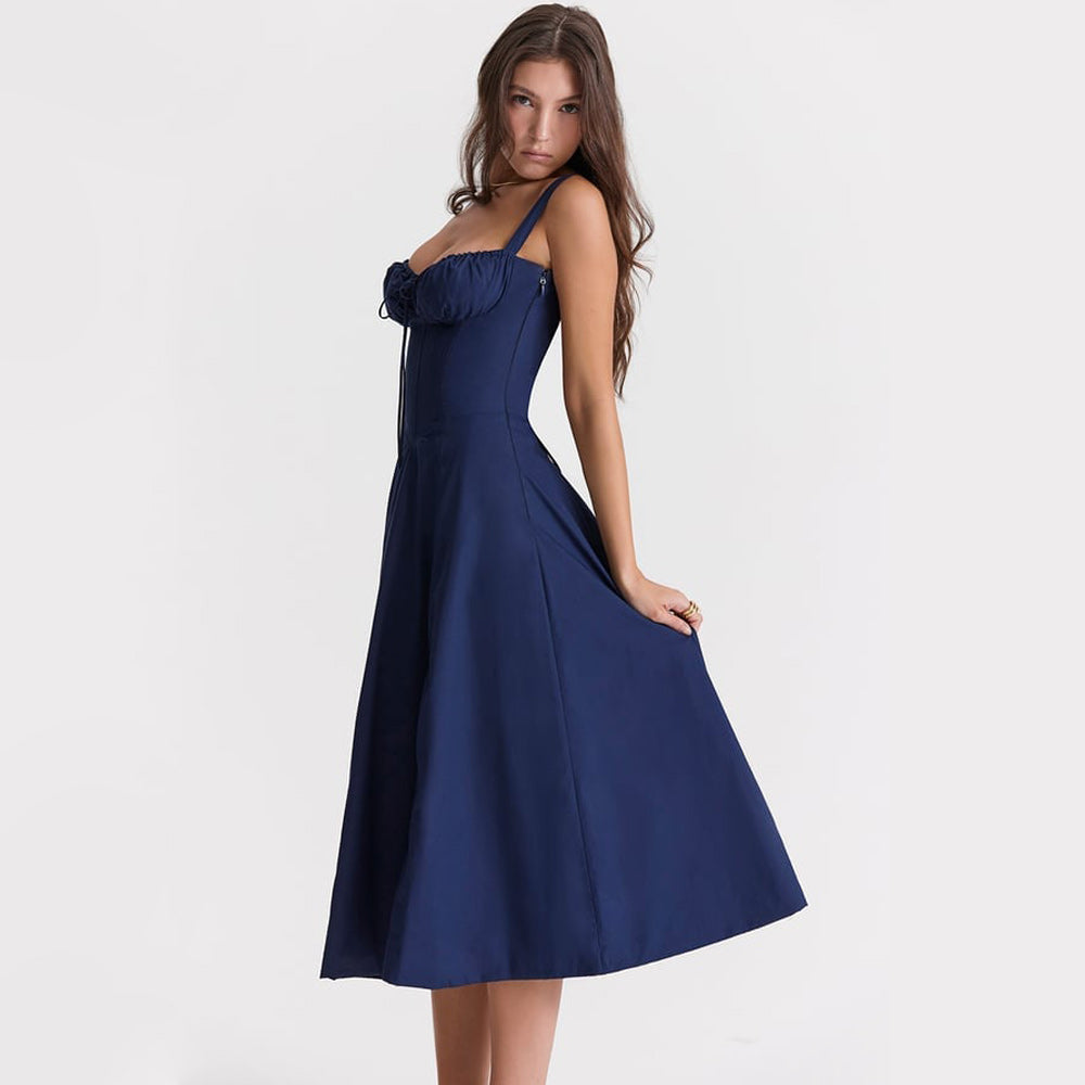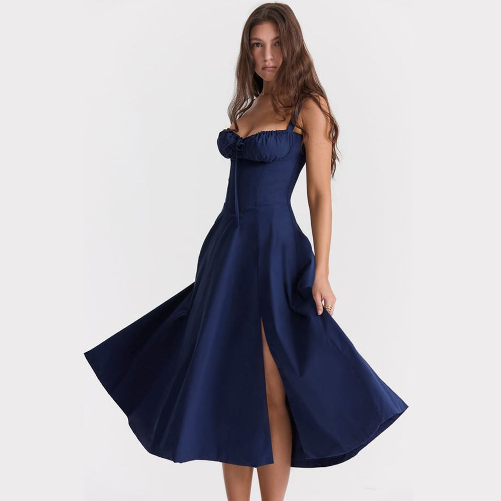 💛💚You'll feel ultra feminine in our dress that's the perfect match for spring and summer garden parties. It's cut from soft polyester in a gorgeous blue print hue. The gathered bust has a drawstring tie and the side split adds a little sexiness to reveal a flash of leg.💜🧡