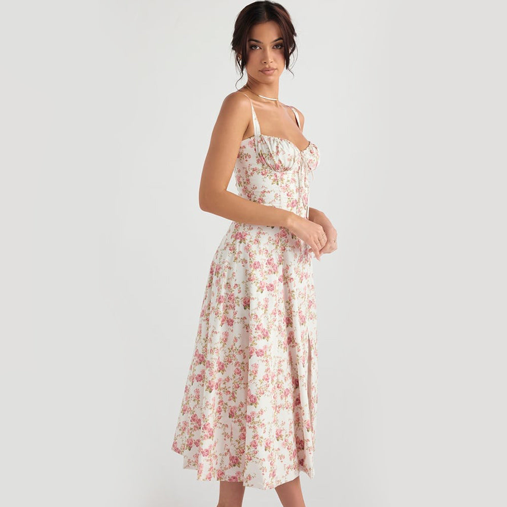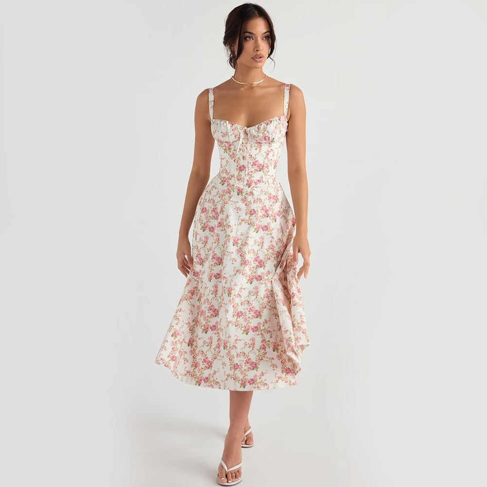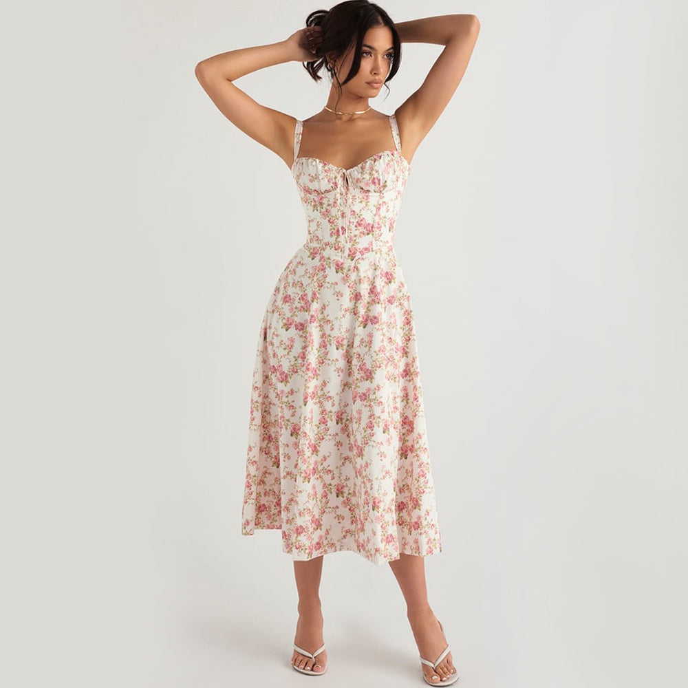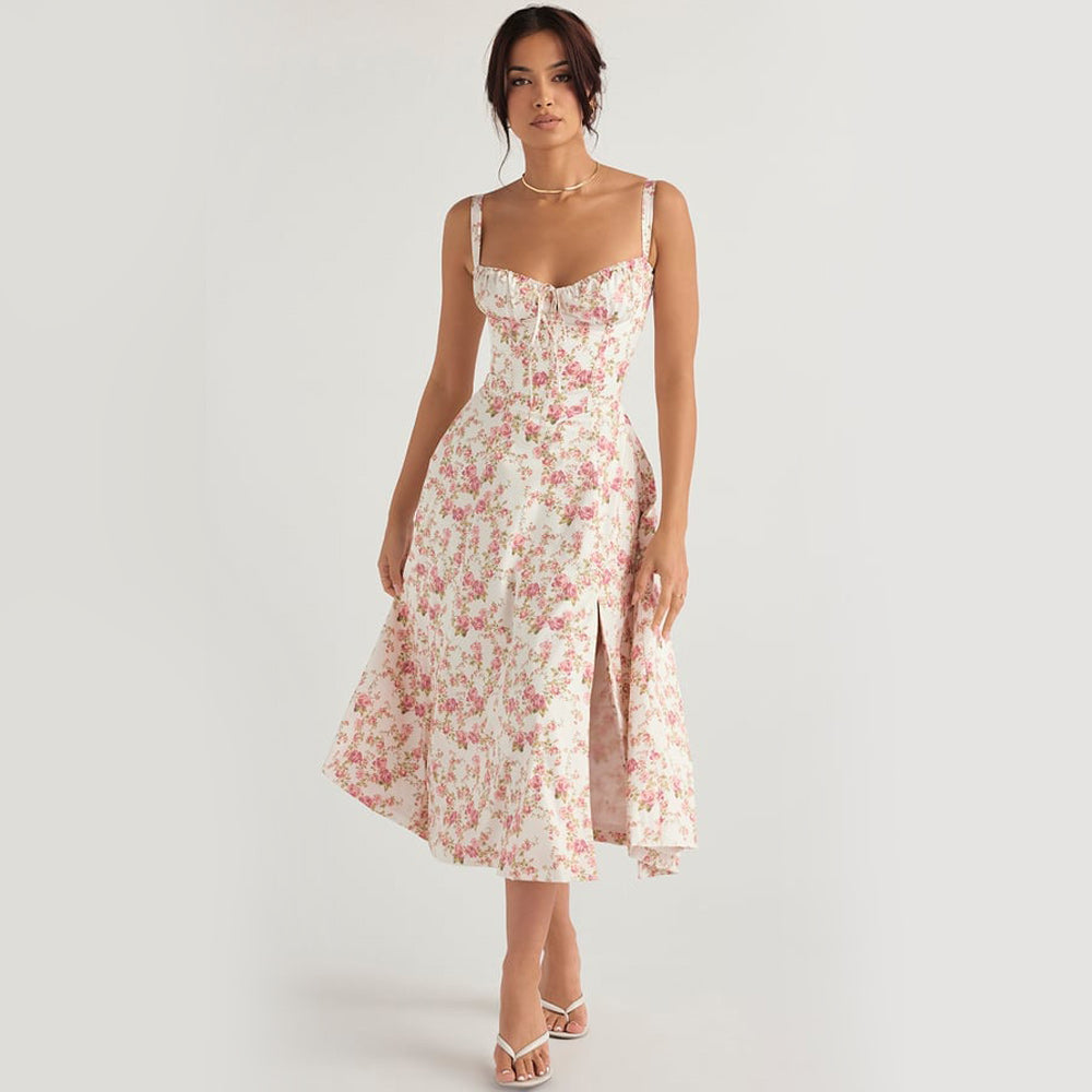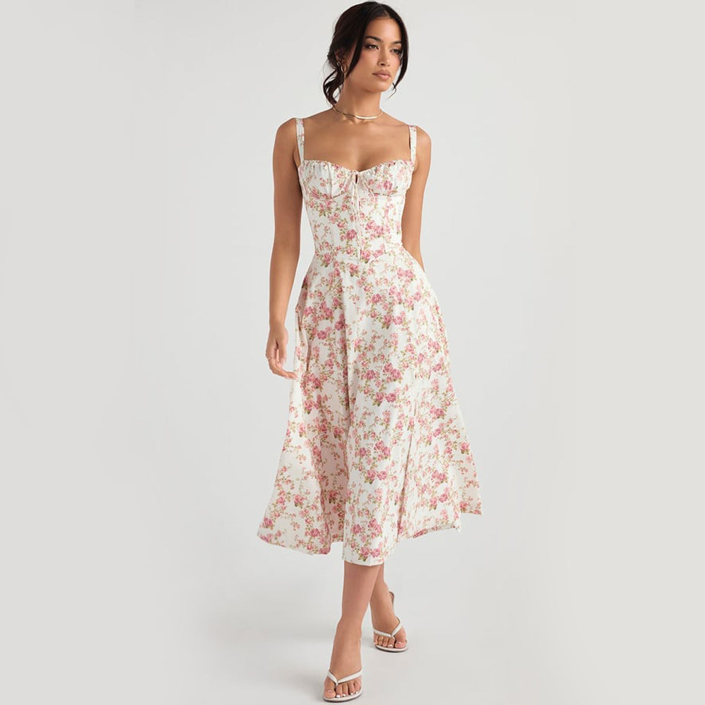 - This flower pattern women's slim dress perfectly combines summer freshness and simple and elegant elements. It is a must-have item for women in summer, suitable for daily leisure or parties