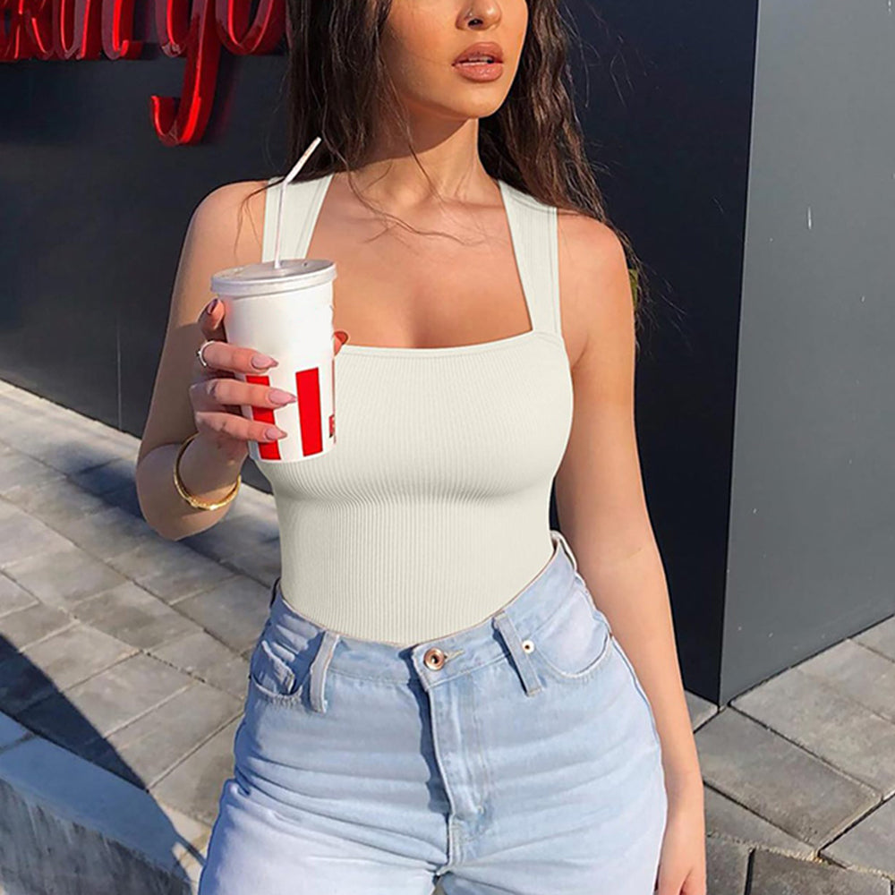 - Sexy tank top bodysuits, flattering square neckline with tapered shoulder straps, simple in design, don’t see through. Best womens, ladies and teen girl clothes.