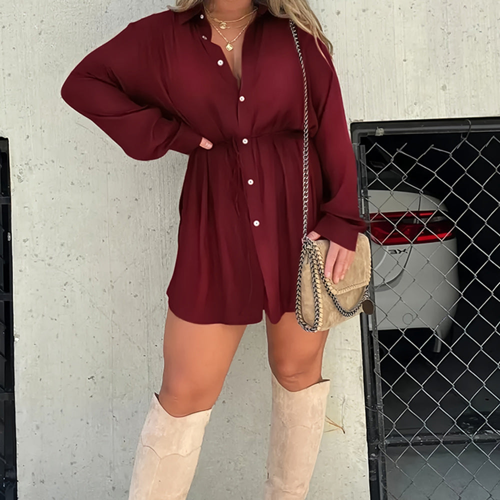 Solid color satin bodysuit with neckline and tie. Wear it open as a layering piece or closed as a dress! Super light fabric!