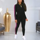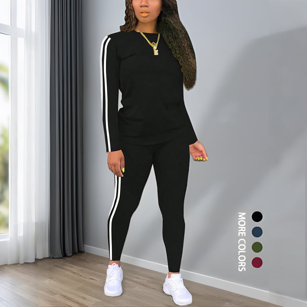 Women's Striped Print Long Sleeve Top & Pants Two-piece Set