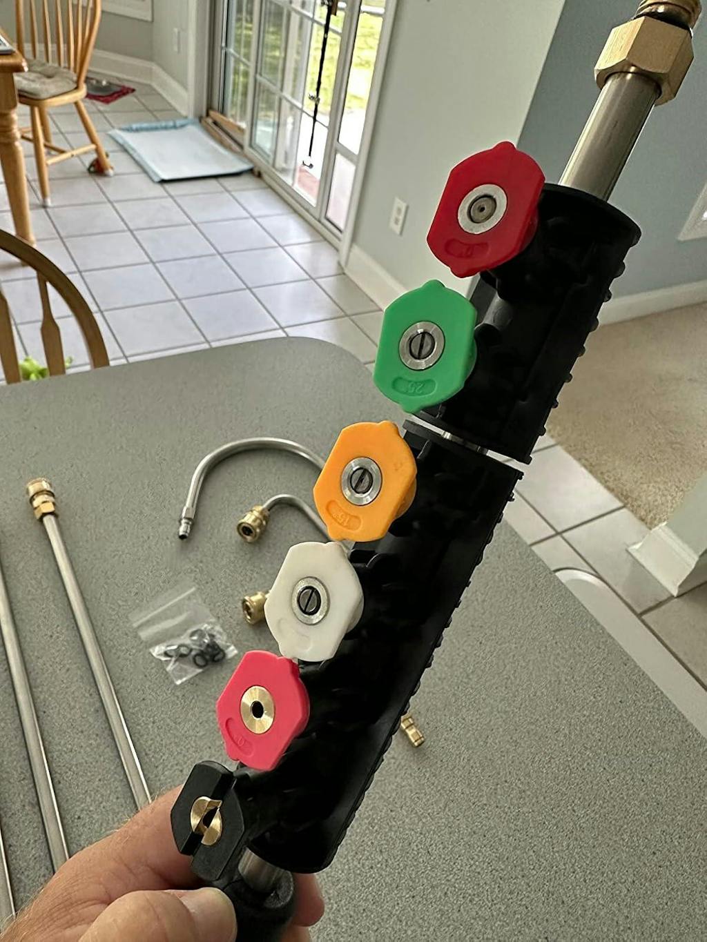This is a well made set of tools designed for cleaning out your gutters without the need for a ladder. It will work nicely if your gutters are on a single story home. There’s an assortment of tubes, bent and straight, enough that it should cover any situation. I like that the fittings are O-ring sealed, so you don’t have to crank each section together with a wrench. The handle conveniently holds several tips, from high volume lower pressure use to higher pressure lower flow use, depending on what’s filling your gutters. You can also use the straight tubes as extensions for some of your other pressure washing tools and applications. They even include a complete replacement set of O-rings for future use. I’m very pleased with the quality of these and the price was very reasonable.