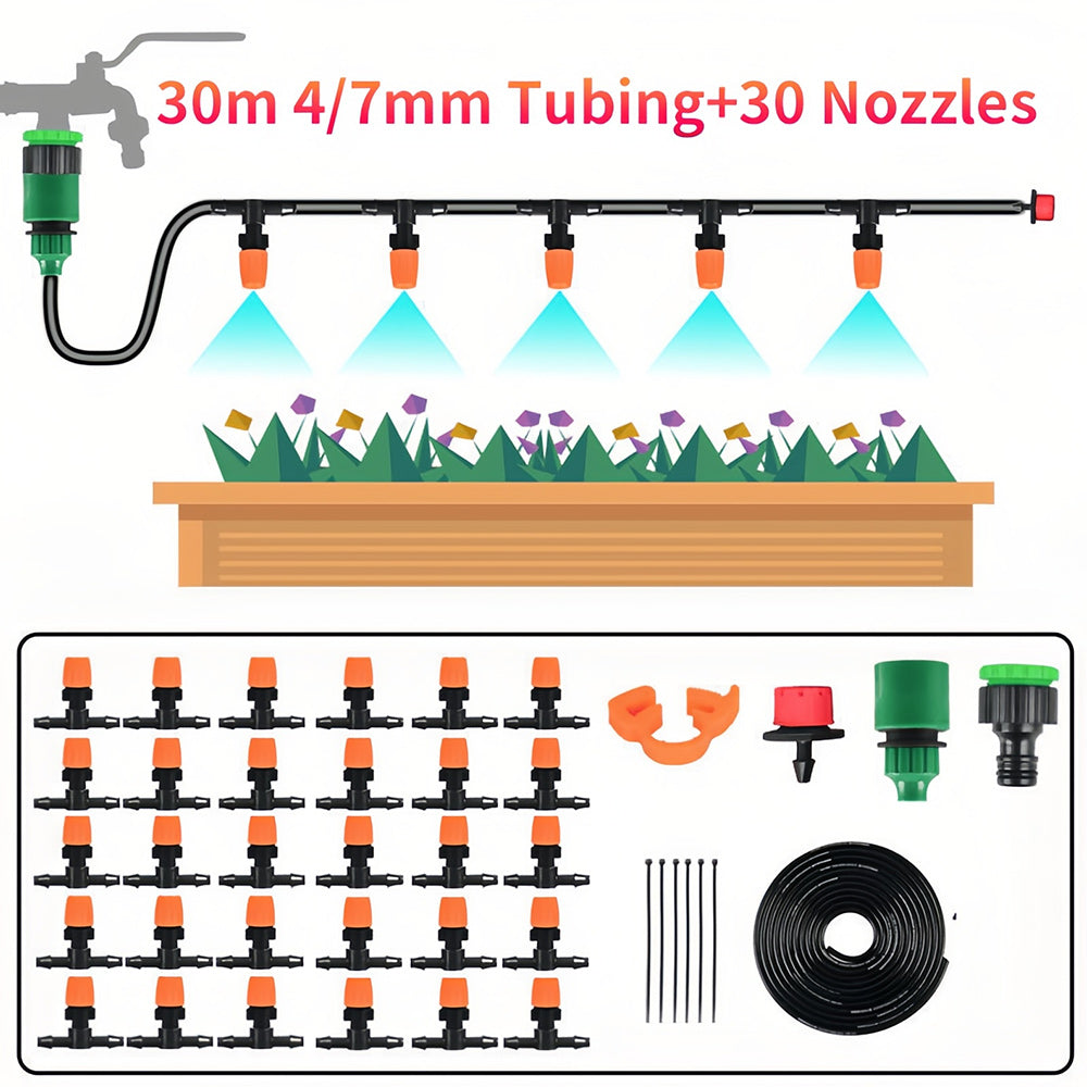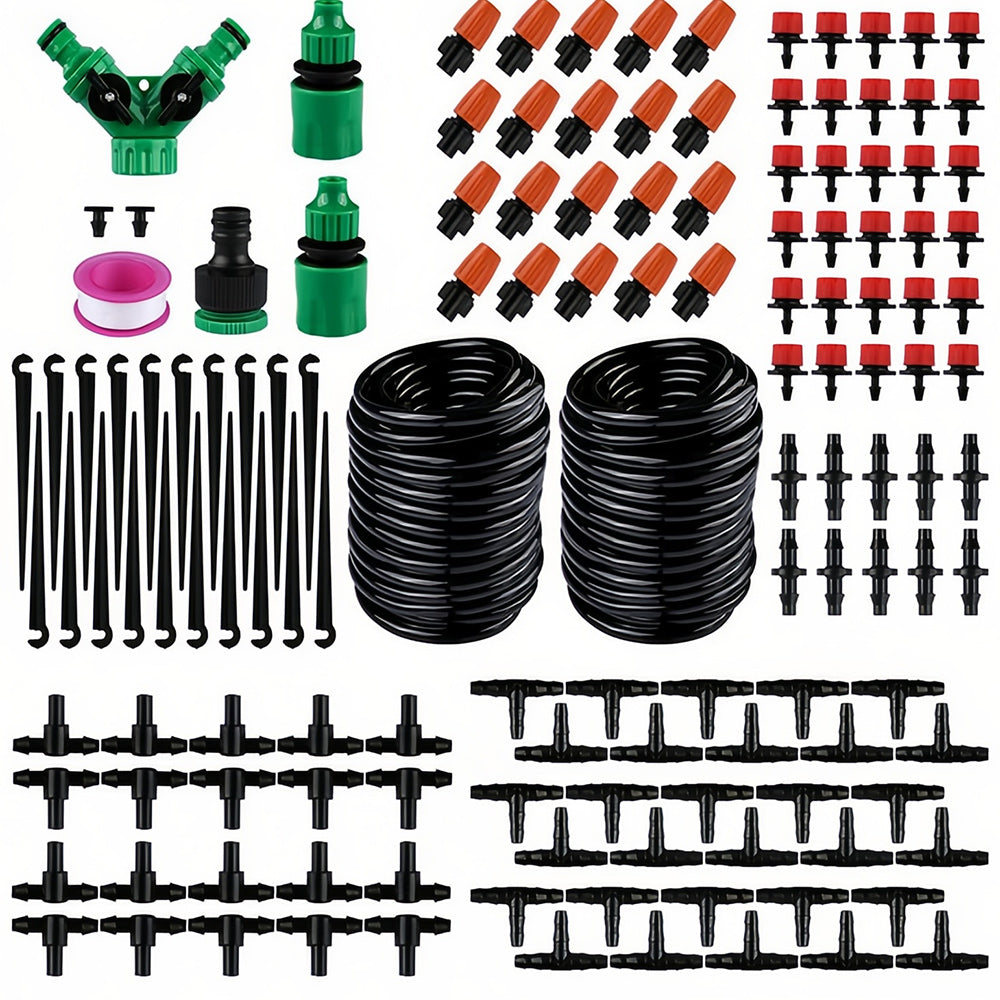 - High-Quality Greenhouse Irrigation System: This drip irrigation system made of PP+POM material. No odor or poison and no effect on plant growth. The drip irrigation hose made of UV-resistant materials, unmatched resistance to chemicals, and it can be buried or put on the surface of the ground in any weather.