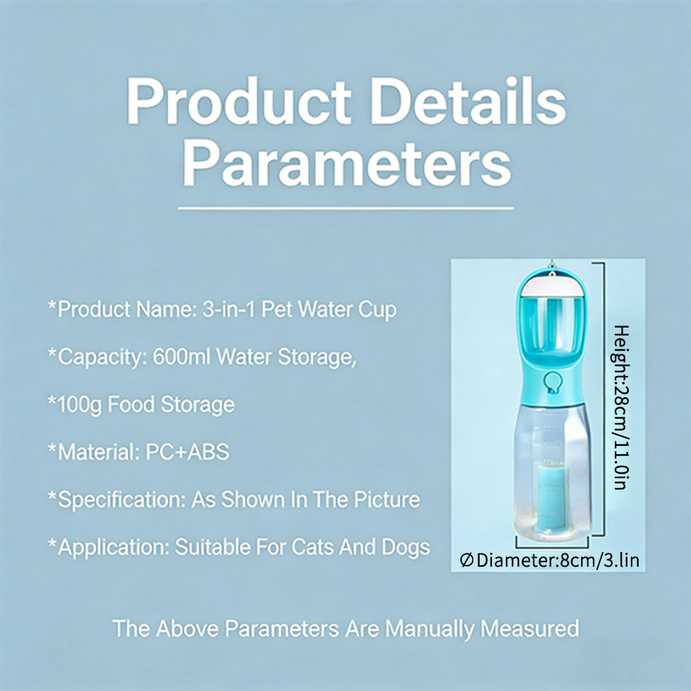 - 1 x Multifunctional 3-in-1 Pet Water Bottle