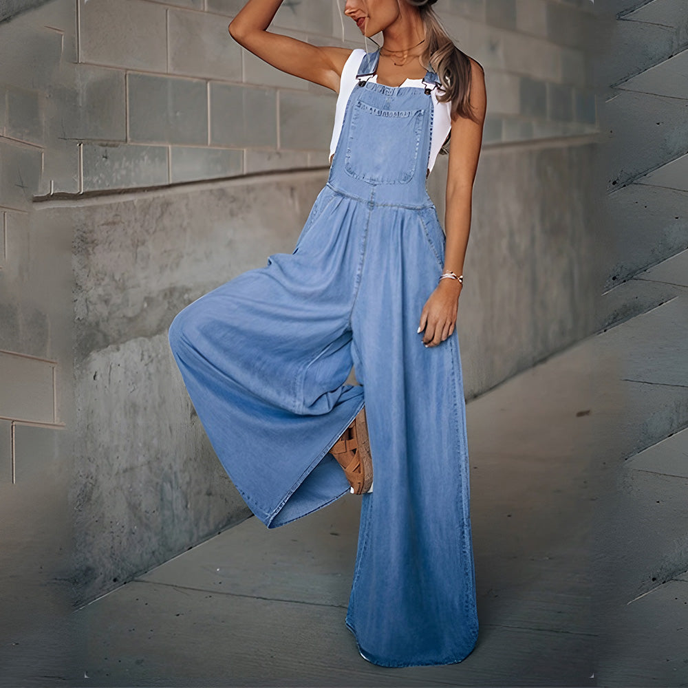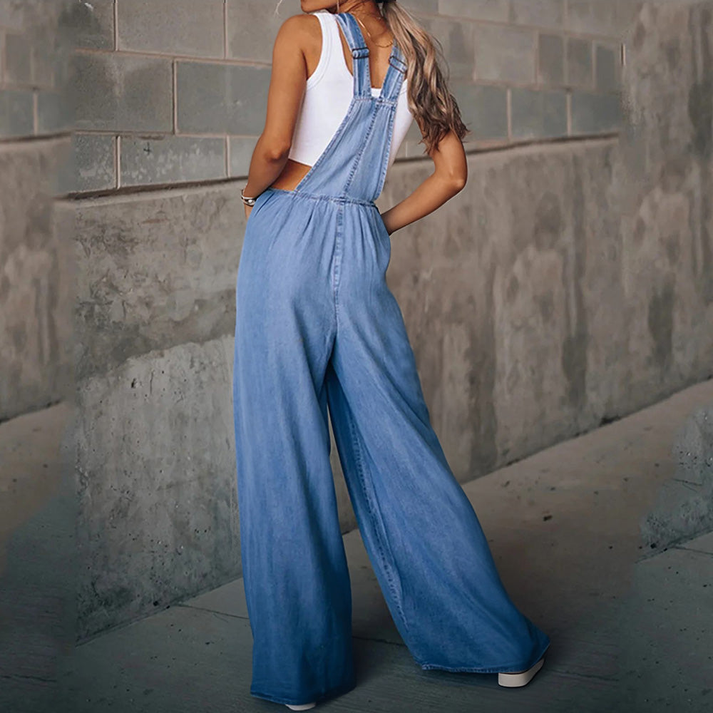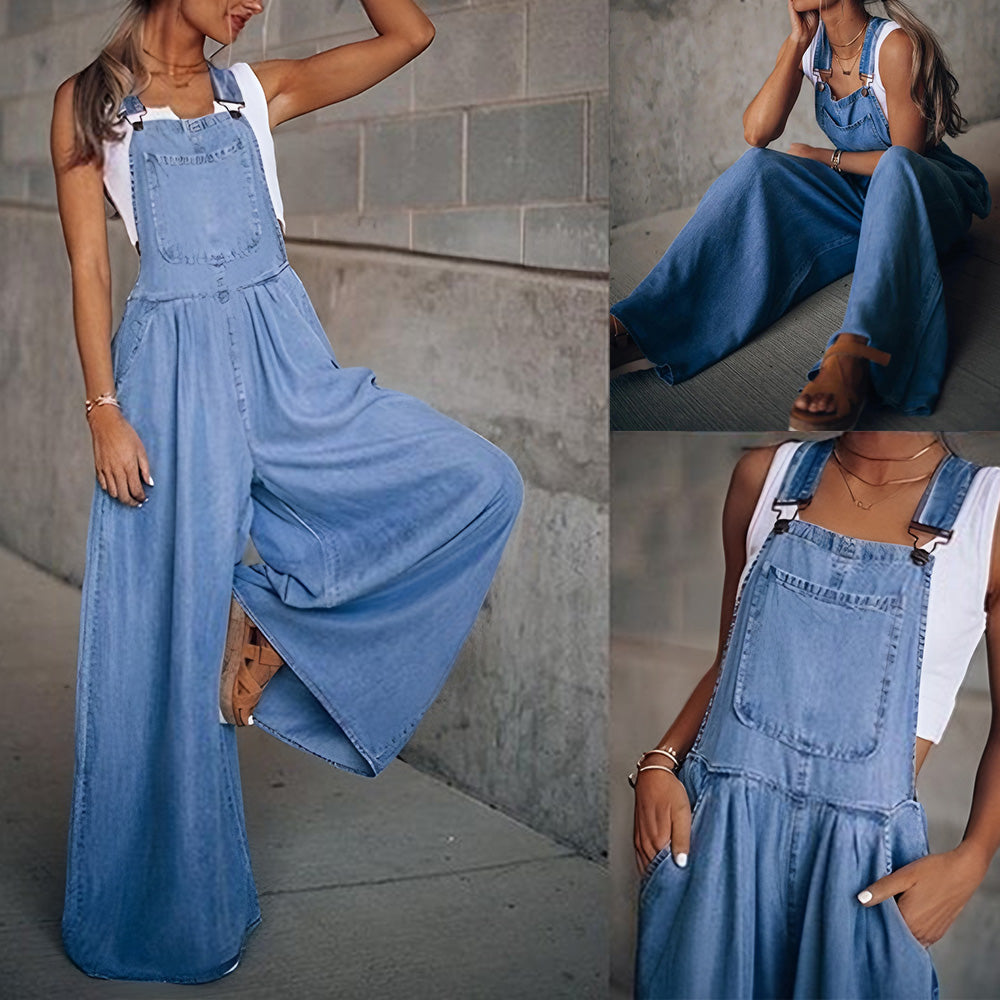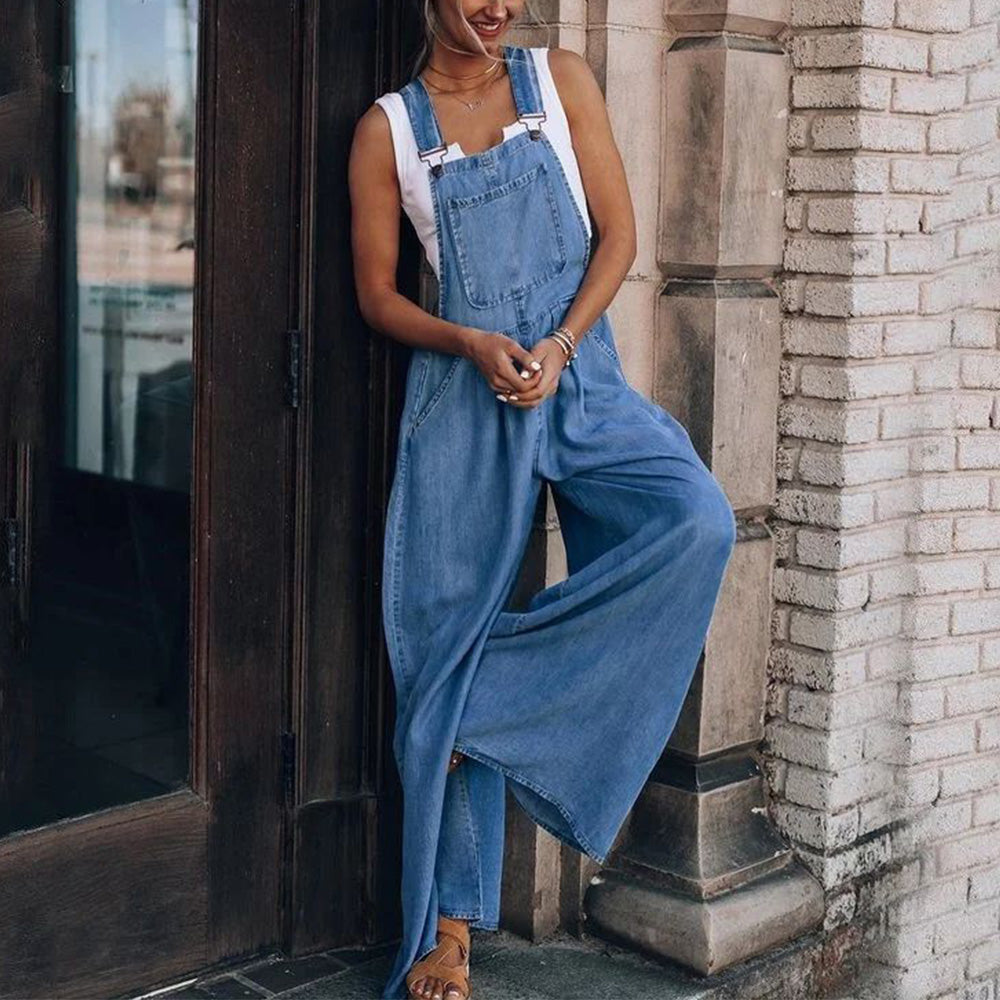 - 1 x Pocket Loose Adjustable Strap Wide Leg Denim